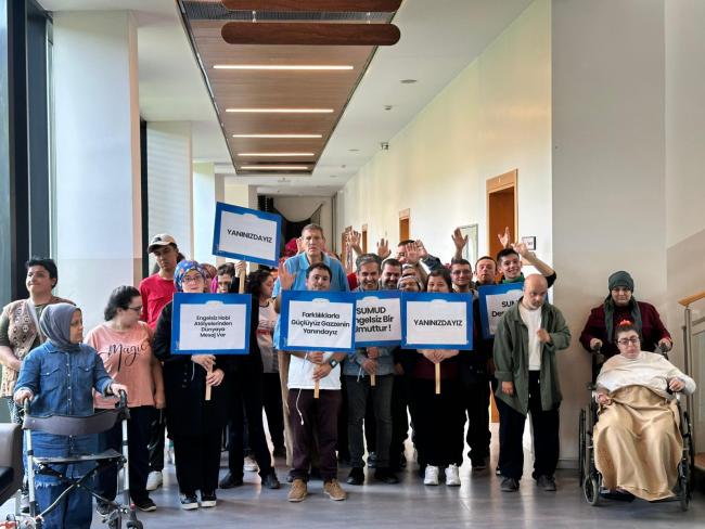 Büyükşehir Belediyesi Engelsiz Hobi Atölyeleri’nde düzenlenen etkinlikte, öğrenciler mavi kurdeleler ve pankartlarla “Sumud Filosu”na destek verdi. Öğrenciler hazırladıkları kurdele ve pankartlarla Gazze’deki direnişe destek verdi, mavi balonlarla barışı gökyüzüne taşıdı.Sakarya Büyükşehir Belediyesi Sosyal Hizmetler Dairesi Başkanlığı Engelli Hizmetleri Şube Müdürlüğü’ne bağlı Engelsiz Hobi Atölyeleri, “Sumud Filosu”na destek amacıyla özel bir farkındalık etkinliği düzenledi.Umudun simgesiEtkinlik kapsamında özel gereksinimli öğrenciler ve eğitmenler, Tasarım Atölyesi’nde “Sumud Filosu”nu temsilen mavi kurdeleler hazırladılar. Mavi kurdeleler, direnişin, sabrın ve umudun simgesi olarak etkinliğin temel parçası oldu.Sumud FilosuProgramda ayrıca öğrencilere “Sumud Filosu”nun ne anlama geldiği anlatıldı. Eğitmenler, Gazze’ye insani yardım ulaştırmak için dünyanın dört bir yanından yola çıkan gönüllülerin verdiği mücadeleyi detaylarıyla aktardı. Öğrenciler, konuyla ilgili sorular sorarak hem tarihsel hem insani boyutuyla yaşananları daha iyi anlama fırsatı buldu.Dayanışma engel tanımazEtkinliğin devamında “Sumud engelsiz bir umuttur”, “Dayanışma engel tanımaz” ve “Filistin ve Gazze’nin yanındayız” mesajlarını içeren pankartlar hazırlandı. Engelsiz Hobi Atölyeleri öğrencileri, hazırladıkları pankartlarla atölye içerisinde bir yürüyüş gerçekleştirdi. Bu yürüyüşle birlikte öğrenciler, barış, özgürlük ve insan hakları adına güçlü ve umut dolu mesajlar verdi.Mavi balonlar göklere bıraktılarProgram, SGM bahçesinde özgürlüğü ve barışı simgeleyen mavi balonların gökyüzüne bırakılmasıyla sona erdi. Renkli ve duygu yüklü anlara sahne olan etkinlikte öğrenciler, empati, farkındalık ve dayanışma duygularını pekiştirdi.Engelsiz Hobi Atölyeleri, gerçekleştirdiği bu anlamlı etkinlikle sadece Gazze’ye değil, tüm dünyaya umut ve insanlık mesajı gönderdi.