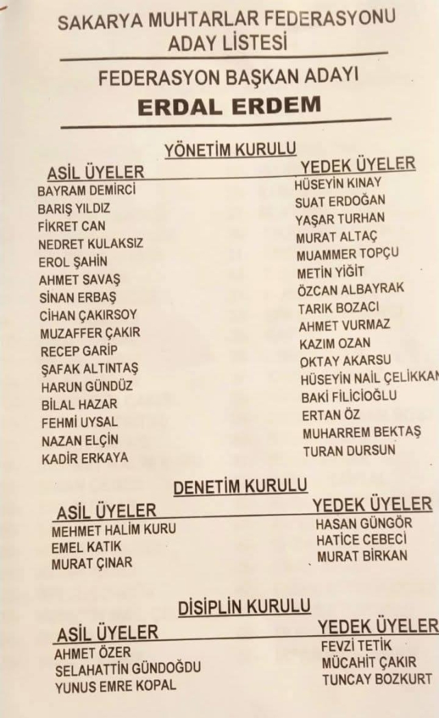 Sakarya Muhtarlar Federasyonu Başkanı Erdal Erdem, yapılan 4. Olağan Genel Kurulda yeniden başkanlığa seçildi.