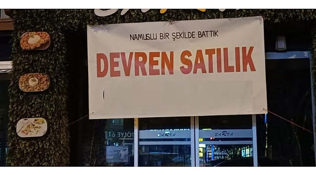 Esnaf, işyerine “Namuslu bir şekilde battık” yazarak işyerini devren satılığa çıkardı.İşyeri sahibi İbrahim Odabaş, dayanacak gücü kalmadığını ödemelerin artık yapılamaz seviyeye geldiği için işyerini satılığa çıkardığını söyledi.