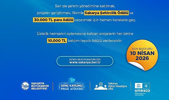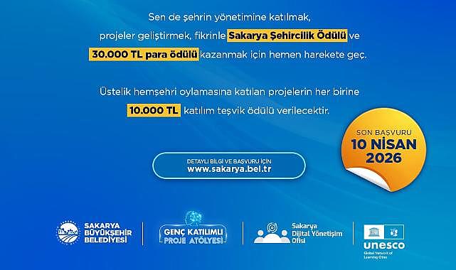 Büyükşehir Belediyesi, yeni neslin şehrin geleceğine yön vermesi için tasarladığı Genç Katılımlı Proje Atölyesi, yeni dönem fikir yarışması için başvuruları almaya başladı. Gıda, çevre, mimari, şehirleşme, ulaşım, spor, dijitalleşme alanlarında en iyi fikri ya da projeyi üretenler Sakarya Şehircilik Ödülü’nün sahibi olacak ve ödül alacak.Sakarya Büyükşehir Belediyesi, gençlerin şehrin yönetiminde söz sahibi olması, genç fikirlerin Sakarya’ya iz bırakması için Genç Katılımlı Proje Atölyesi’ni bir gelenek haline getiriyor.Projenin her yıl düzenlenen fikir yarışmasında 2025-2026 dönemi için kayıt başvuruları www.sakarya.bel.tr portalında açıldı.Sakarya Dijital Yönetişim Ofisi çatısı altında 4’üncüsü gerçekleştirilecek yarışmada, “Üret, Karar Ver, Uygula” mottosuyla gençlerin projeleri ve değerli fikirleriyle şehrin yönetimine katılımı sağlanacak.Başvurular internet adresindeYarışma “Gıda, Çevre ve Su Yönetimi, Mimari ve Kentsel Tasarım, Ulaşım ve Kent İçi Hareketlilik, Gençlik, Spor ve Kültür, Sosyal Hizmetler ve Dijitalleşme” olmak üzere toplam 6 farklı kategoride gerçekleştirilecek.15-30 yaş aralığındaki gençler bireysel, grup, inisiyatif, platform veya kulüp olarak birden fazla proje sunabilecek. Başvurular 10 Nisan 2026 tarihine kadar devam edecek.Ödüller sahiplerini bulacakŞehrin geleceği için önerilerini sunan gençlerin proje fikirleri ön değerlendirmenin ardından jüri değerlendirmesine alınacak. Hemşeri oylamasıyla kazanan proje belirlenecek ve sonuçlar 4 Mayıs’ta açıklanacak.Birinci olan isme “Sakarya Şehircilik” ödülü ve 30.000 TL para ödülü verilecek. Hemşehri oylamasına katılan her projeye ise katılım teşvik ödülü olarak 10.000 TL takdim edilecek.