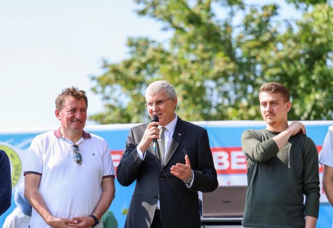 Ferizli’de gerçekleştirilen Gençlik Şöleni’ne makam aracı TOGG ile katılan Büyükşehir Belediye Başkanı Ekrem Yüce, 28 Mayıs için “rehavete kapılmayacağız” çağrısı yaparak, “Her zaman Türkiye Yüzyılı diyoruz, bu vizyonu şahlandıracak olan bizim gençlerimizdir. Size çok güveniyoruz” diye konuştu.Sakarya Büyükşehir Belediye Başkanı Ekrem Yüce, Ferizli’de gençlerle bir araya geldi. Gölkent Mahallesi Akgöl kenarında düzenlenen Gençlik Şöleni Buluşması’na makam aracı TOGG ile katılan Büyükşehir Belediye Başkanı Ekrem Yüce, sohbet ettiği gençlerle yakından ilgilendi. Gündemi, seçim sürecini, Sakarya’nın ve Türkiye’nin yarınlarını konuşan Yüce’ye ve yerli otomobil TOGG’a ilgi çok yoğundu.“Tarihi bir zafer alacağız”Programa ayrıca Ferizli Belediye Başkanı İsmail Gündoğdu, 28. Dönem AK Parti Milletvekili Adayı Rahmi Can Şeşen katıldı. Gençlerin Başkan Yüce ve TOGG ile hatıra fotoğrafları çekildiği programda Yüce, 28 Mayıs için “Rehavete kapılmayacağız ve bu süreci tarihi bir zaferle taçlandıracağız” vurgusu yaparak gençlere bu konuda çok güvendiğini söyledi. Yüce ve gençler şölende hep bir ağızdan türküler söyledi.Türkiye Yüzyılı gençlerle şahlanacakGençlere olan inancının tam olduğunu ifade eden Başkan Yüce, “Bizler her zaman bu ülkenin mihenk taşını gençler olarak gördük. Gençlerimiz gerek AK Parti’mize gerekse vatanımıza ve milletimize hizmet için durmadan, yorulmadan koşturuyorlar. Bizler her zaman Türkiye Yüzyılı vizyonu diyoruz. İşte bu vizyonun geleceğe taşıyacak ve onu şahlandıracak olan bizim gençlerimizdir. Bizler gençlerimize güveniyoruz ve güçlü bir Türkiye’nin geleceğini gençlerimizle birlikte kurguluyoruz” diye konuştu.“Vatan bayrağını gençler taşıyacak”Yüce, gençlerin vatan bayrağını en iyi şekilde taşıyacağına inandığını ifade ederek, “Türkiye’miz sayın Cumhurbaşkanımızın liderliğinde son 20 yılda adet çağ atladı. Özellikle sanayi ve teknoloji alanında gerçekleştirilen reformlar, genç kuşaklarımızın istihdamı ve onların kendilerini geliştirmeleri noktasında oldukça önemli bir rol oynamaktadır. Bunun yanı sıra eğitimde gerçekleştirilen yenilikler, gençlerimizin ufkunu açarak bu topraklara olan aidiyet duygularını daha da perçinlemiştir. Global ölçekte hızla yükselen teknolojiyi yakından takip eden bir Türkiye var. Kendi teknolojik altyapısını oluşturan bir Türkiye var. İnşallah gelecekte de gençlerimiz bu vatan bayrağını bizden sonra da en iyi şekilde taşıyacaktır” dedi.“Sandıkları patlatacağız”Seçim için “rehavete kapılmayacağız” vurgusu yapan Başkan Yüce, “Biliyorsunuz önümüzde önemli bir 28 Mayıs seçimleri var. Gençlerimiz 14 Mayıs’ta iyi bir sınav verdi.Şimdi ise 28 Mayıs’ta yine hep birlikte şahlanış dönemini başlatacağız. Bizler inanıyoruz ki Türkiye Yüzyılı vizyonunu birlikte inşa edeceğimiz geleceğimizde, gençlerimiz 28 Mayıs’ta güven ve istikrar diyecektir. 28 Mayıs’ta sandıkları hep birlikte patlatacak ve Türkiye Yüzyılını gençlerin yüzyılı yapacağız” diye konuştu.Başkan Yüce, programdan sonra beraberindeki heyetle birlikte Ferizli ve Söğütlü’deki muhtarlarla buluşarak bölgedeki çalışmalar hakkında görüştü ve talepleri dineldi.