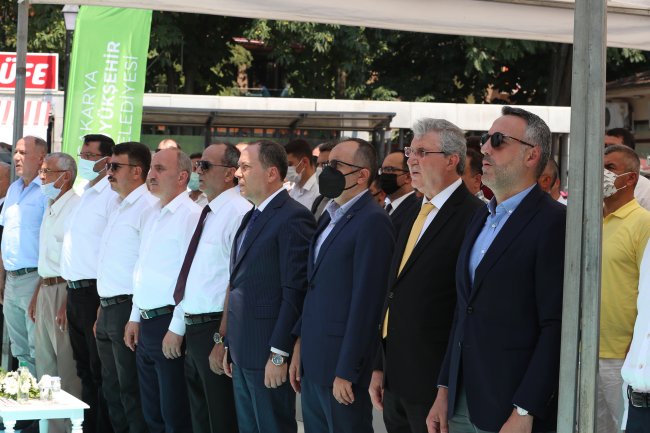 Açılış konuşmasını yapan Başkan Ekrem Yüce meydanı Geyve’nin tarihi ve kültürel dokusuna uygun şekilde inşa ettiklerini belirterek, “Bugün Kurban Bayramı arifesi. Böyle güzel bir günde sizlerle bir arada olmanın mutluluğunu yaşıyorum. Biliyorsunuz ben Geyveliyim. Çocukluğum, gençliğim burada bu sokaklarda, bu meydanda geçti. Geyve’nin benim hayatımda çok özel bir yeri var. Allah’a hamdolsun ki bana şehrimize ve Geyve’ye hizmet etme imkânı verdi. Geyve Meydanının yenilenmesi bana nasip oldu. Hepinize bu güzel günde açılışımıza teşrif ettiğiniz için teşekkürlerimi sunuyorum. Meydanların, bir şehrin kimliğinin oluşmasında önemli bir yeri vardır. Biz de Geyve’mizin tarihi ve kültürel dokusuna uygun olarak bu meydanı inşa ettik. Şehrimizin doğal ve tarihi güzelliklerine sahip olan Geyve ilçemizin merkezini ve bağlı sokaklarını, bölgenin dokusuna uygun bir proje ile yeniden düzenledik.25.000 m²’lik proje alanındaki yeni meydanla Geyve’nin merkezi yepyeni bir görünüme kavuştu.” dedi.Başkan Yüce, projeyi anlattı Başkan Yüce, meydan projesinin detaylarını anlatırken, “Proje içerisinde; yer altı şadırvanı, bayan wc-abdesthane, yöresel satış ofisi, revaklar, süs havuzu, sert zemin, peyzaj işleri, çocuk oyun parkı, kent mobilyaları, pergolalar, aydınlatma direkleri, ayva motifi ve ayva bahçesi bulunmaktadır. Sinan Bey Camisi avlusundaki Revaklar Türk İslam mimarisine uygun şekilde, Sakarya çevremizde bulunan doğal taş olan kandıra taşı ile yenilendi. Her türlü hava şartına dayanabilecek şekilde yüksek mukavemetli bir tür olan ireko ağacı ile döşemeleri yapıldı. Paşa sokak, Başar sokak, 1066 sokak, 1067 sokak, Balkan sokak, Cami çıkmazı sokak, Sinan Bey Cami çevresi, Elvan Bey sokak, Belediye sokak, Belediye önü, PTT önü, Ayva motifi çevresi, Yöresel Satış Ofisi çevresi, Ayva bahçesi sert zemin imalatları ve yağmur suyu alt yapı imalatlarını gerçekleştirdik.” diye konuştu.“Geyvemize hayırlı uğurlu olsun”Alt ve üst yapının tamamen yenilendiği alanda inşa edilen projenin Geyve’ye hayırlı olmasını dileyen Başkan Yüce, “Sezai Karakoç Sokağında da yeniden düzenleme işleri kapsamında alt yapı ve üst yapı çalışmalarını tamamladık. SASKİ ekiplerimizin ve SEDAŞ tarafından altyapı hatlarının yenilenmesinin ardından ekiplerimiz tarafından kaldırım genişletme, aydınlatma direklerinin yenilenmesi, zemin kaplamalarının yenilenmesi işlemleri yapılmıştır. Meydan düzenlemesi kapsamında trafiğe kapalı olacak alanlarda hidrolik bariyerlerimizin imalatları tamamlandı.10 milyon 320 bin lira maliyete sahip proje kapsamında 9 adet wc ve 23 adet şadırvan yer altına alındı. Geyvemiz için büyük şans olduğunu düşündüğüm Murat Başkanımızı tebrik ediyorum. Cumhurbaşkanımız kurdeleyi kesti bizde bugün tanıtımı için buradayız, vatandaşlarımıza hayırlı olsun.” dedi.“Geyve harika bir meydana sahip oldu”Geyve Belediye Murat Kaya, Başkan Ekrem Yüce’nin katkılarıyla Geyve’nin harika bir meydana sahip olduğunu belirterek, “Halkımızın mutluluğu bizim mutluluğumuzdur. Başkanımız Ekrem Yüce ile şehrimize hizmet sunuyoruz. Meydanımızın ismi Cumhuriyet Meydanı. Projenin yapımında emeği geçen herkese şükranlarımı sunuyorum. Çok titiz bir çalışma sonucunda hamdolsun çok güzel bir proje tamamlandı. Tüm hizmetlerimizde birlik ve beraberlik içerisindeyiz. Sakaryamız için gece gündüz çalışan, şehrimizi şaha kaldıran Başkanımız Ekrem Yüce’ye teşekkür ediyorum. Tüm eleştirilere açığız. Atatürk büstü kaldırılıyor diye yaygara koparanlar oldu. Geyve Meydanı için de konuştular ama hamdolsun bugün harika bir meydana sahip olduk. İlçemize ve şehrimize hayırlı olsun” dedi.Vatandaşların da beğenisini kazanan Geyve Meydanı, güçlü ve kaliteli mimari yapısıyla bölge halkına uzun yıllar hizmet vererek ilçenin buluşma noktası olacak.