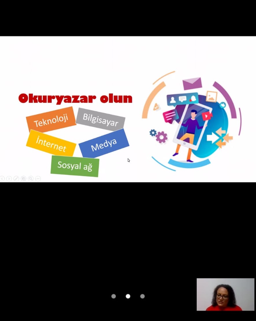 Öğretmenlerimizle, Uzaktan eğitim sürecinde güvenli internet kullanımı, medya kullanımı, bu platformlarda yaşanabilecek sıkıntılar, dikkat edilmesi gereken hususlar ve “Dijital Ayak İzi” kavramı ile ilgili bilgiler verilirken, güvenli internet ile ilgili kaynaklar ve faydalı olabilecek linkler paylaşıldı.