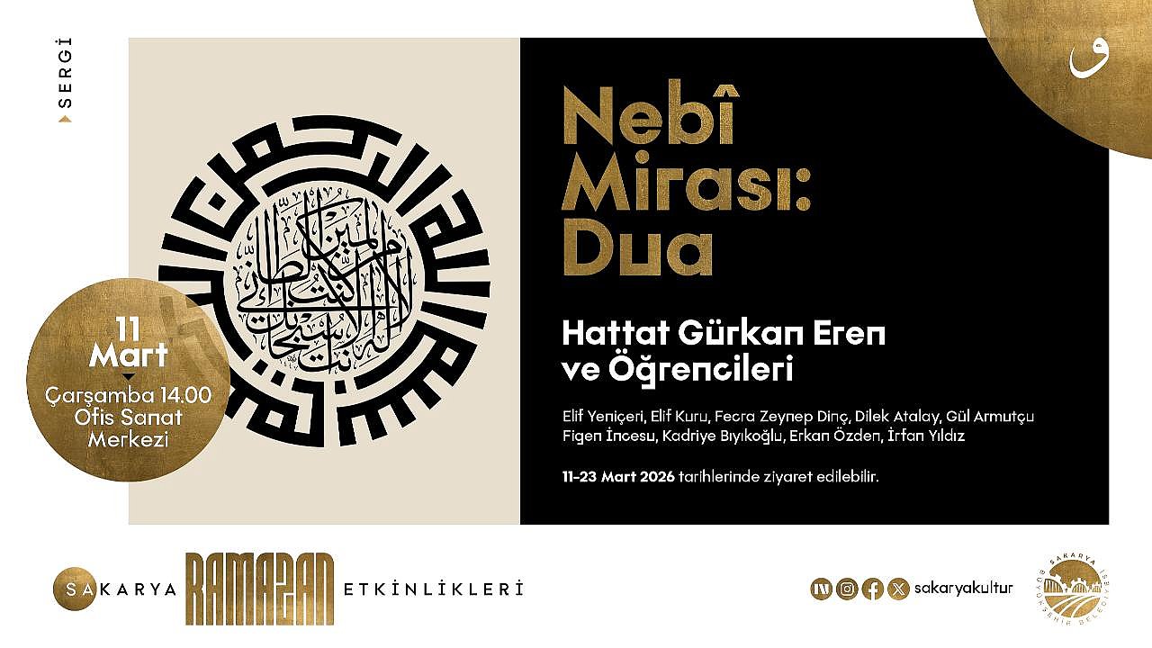 Büyükşehir Belediyesi, Ramazan Kültür Sanat Etkinlikleri 11 Mart Çarşamba günü önemli bir sergiye ev sahipliği yapacak. Hattat Gürkan Eren ve öğrencileri tarafından hazırlanan ‘Nebi Mirası: Dua’ adlı sergi Ofis Sanat Merkezi’nde sanat ve düşünce dünyasını bir araya getirecek. Açılış saat 14.00’da başlayacak.Sakarya Büyükşehir Belediyesi tarafından Ramazan ayına özel hazırlanan kültür sanat takvimi, ‘Nebi Mirası: Dua’ isimli hat sergisini Ofis Sanat Merkezi’nde (OSM) kültür sanat dostlarına açacak. Sergide geleneksel hat sanatının zarif örnekleri ve dua temalı eserler yer alacak.Hattat Gürkan Eren ve öğrencilerinin hazırladığı sergide, hat sanatının estetik ve manevi yönünü yansıtan çalışmalar sanatseverlerin beğenisine sunulacak. Sergi 11-23 Mart tarihleri arasında ziyarete açık olacak.