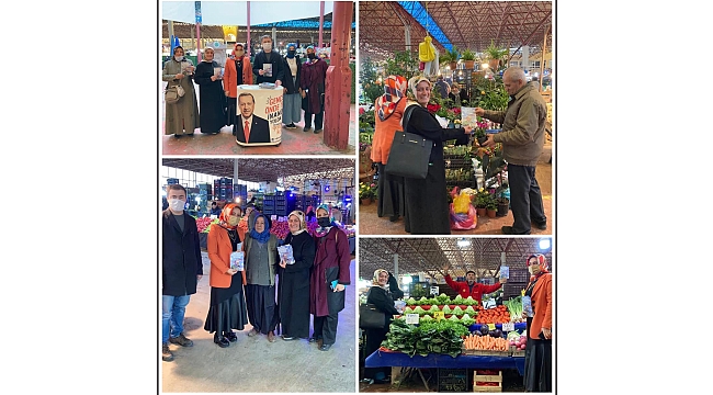 Kadın Kolları ve Gençlik Kollarının başlattığı çalışma Salı pazarında büyük ilgi gördü. AK Parti Kadın Kollarının dağıttığı broşürlere vatandaşların ilgi göstermesi, AK Partili Kadınları mutlu etti.