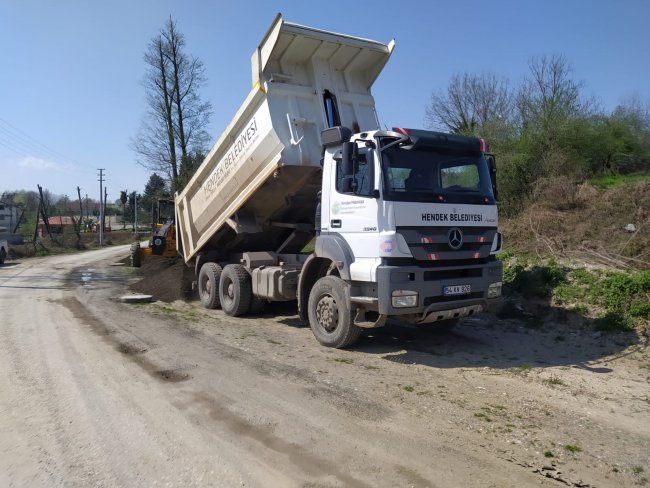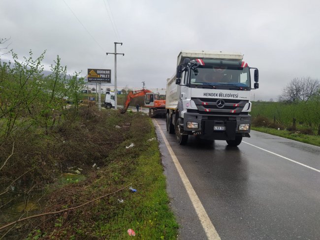 HENDEK BELEDİYESİNDEN SAHADA ETKİN ÇÖZÜMLER Mahallelerde yaşanan yol ve yağmur suyu gibi sorunlara müdahale ederek çözümler bulan Hendek Belediyesi, vatandaştan gelen talep doğrultusunda programlı çalışmalarına hız kazandırdı.YAĞMUR SUYU HATLARIBir yandan proje çalışmalarını sürdüren Hendek Belediyesi, diğer yandan sahada sorunlara etkin ve kalıcı çözümler üretmeye devam ediyor. Ekipler çalışmaları kapsamında Yeşilvadi Mahallesinde heyelan nedeniyle bozulan yol geçişine yağmur suyu akışını da sağlamak adına 600’lük beton büzler döşeyerek çözüm buldu. Böylelikle yol güvenliği sağlanırken, yağmur suyu geçişlerinde de sorun ortadan kaldırılmış oldu. Ekipler diğer yandan Süleymaniye Mahallesinde 2 km uzunluğunda açık kanalda temizlik çalışması başlattı.YOL BAKIM ONARIMAyrıca Servetiye, Çağlayan, Rasimpaşa, Sivritepe, Yenimahalle, Süleymaniye ve Uzuncaorman mahallelerinde, yol bakım onarım çalışmaları tamamlandı. Vatandaşlardan gelen talepler doğrultusunda bu çalışmalarını tamamlayan ekipler, tüm taleplerin ciddiyetle programlı bir şekilde çözüme kavuştuğunu duyurdu. Ayrıca Sümbüllü mahallesinde kilitli parke çalışmaları hızla devam ederken, özellikle çocuk parklarında bakım-onarım ve temizlik çalışmaları da hızlandı. Vatandaşlar çalışmalar nedeniyle Başkan Turgut Babaoğlu’na teşekkür etti.
