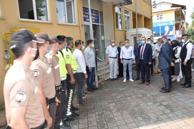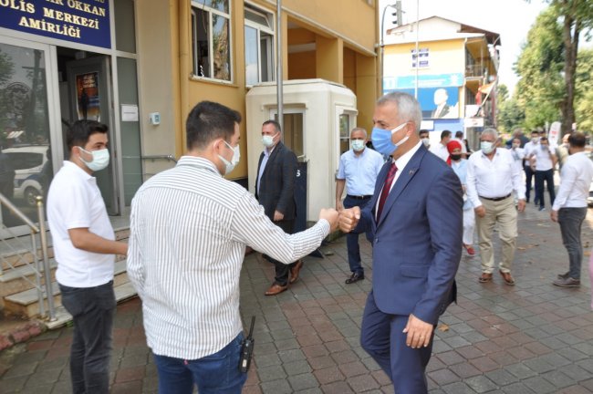 HENDEK PROTOKOLÜ BAYRAMLAŞTIHendek Kaymakamlığı tarafından Müftülükte protokol bayramlaşma töreni düzenlendi. Protokol Emniyet ve Jandarma’da bayramlaşırken, Huzurevi sakinleri ve Hendek Devlet Hastanesinde hastaları ziyaret etti.Halkın katılımıyla gerçekleşen bayramlaşmaya Hendek Kaymakamı Halil İbrahim Acır, Hendek Belediye Başkanı Turgut Babaoğlu, Hendek Cumhuriyet Savcısı Çağrı Tolga Taşkın, Hendek İlçe Emniyet Müdürü Şevket İlhan, İlçe Jandarma Komutanı Yüzbaşı Süleyman Sercan Candan, MHP İlçe Başkanı Burhan Namlı ve Yönetimi, AK Parti İlçe Başkanı Hasan Serdar Baykal ve Yönetimi, İlçe Müftüsü Murtaza GÜR, MHP Kadın Kolları Başkanı Zübeyde Gürbüz, Ülkü Ocakları Hendek İlçe Başkanı Sıtkı Yaz, AK Parti İlçe Gençlik Kolları Başkanı Ali Torunoğlu, belediye meclis üyeleri ve vatandaşlar katıldı. Burada düzenlenen törenin ardından protokol İlçe Emniyet Müdürlüğü ve İlçe Jandarma Komutanlığında görev yapan güvenlik güçleriyle bayramlaştı. Ardından Melek Nişancı Huzurevi ziyaret edilirken, son olarak Hendek Devlet Hastanesinde tedavi gören hastalar ziyaret edilerek bayramları kutlandı.