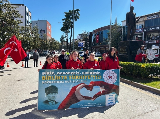 Atatürk’ün Samsun’a çıkışının 106’ncı yıldönümü ve “19 Mayıs Atatürk’ü Anma Gençlik ve Spor Bayramı” münasebetiyle düzenlenen kutlama programı ilçe protokolü, öğretmen ve öğrencilerin katılımıyla Gençlik Yürüyüşüyle başladı.