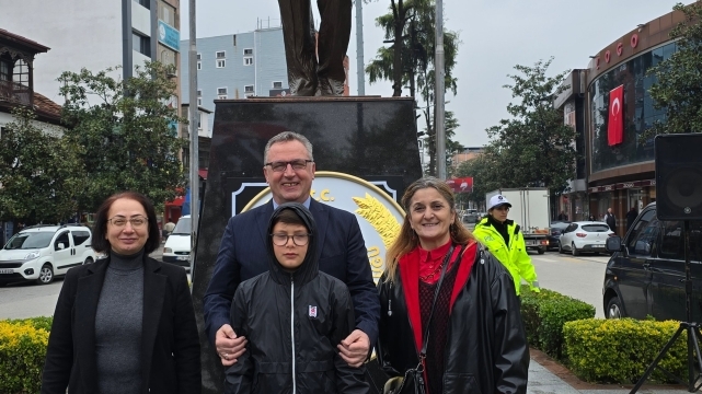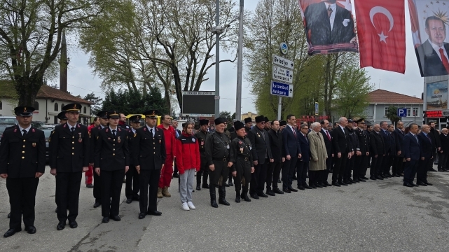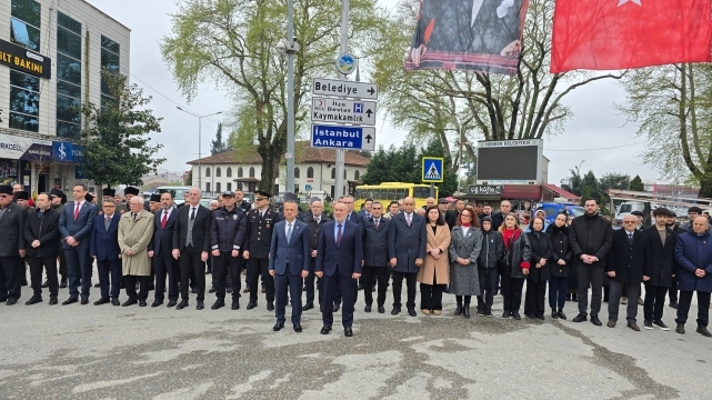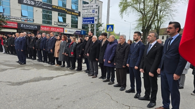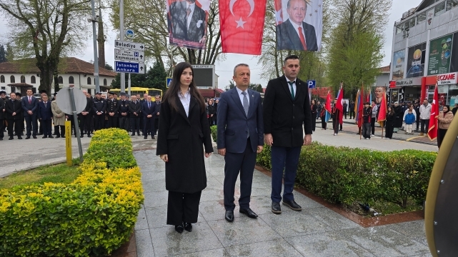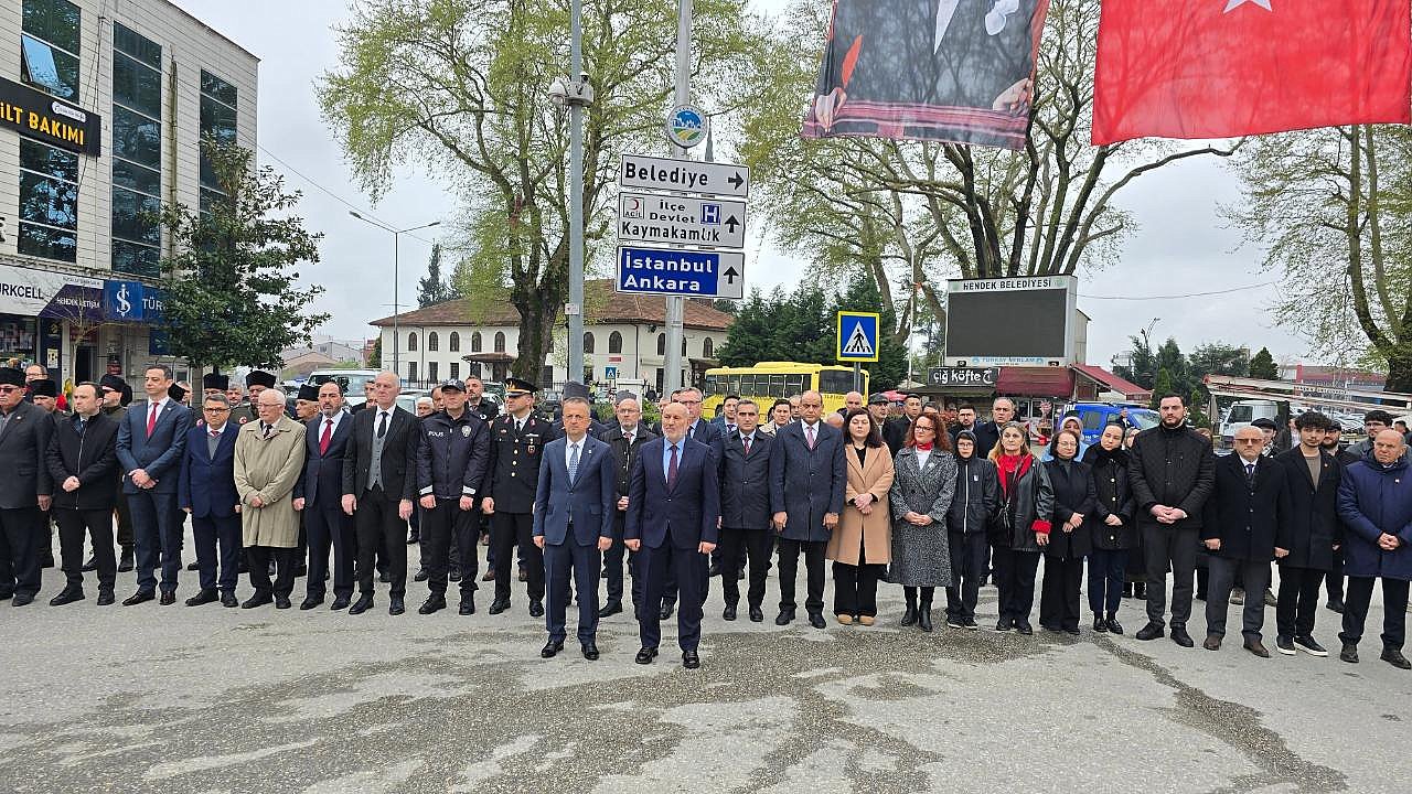 Hendek İlçe Milli Eğitim Müdürü Murat Çekiçcioğlu tarafından anıta çelenk sunması sonrası saygı duruşunda bulunuldu ve İstiklal Marşı okundu.