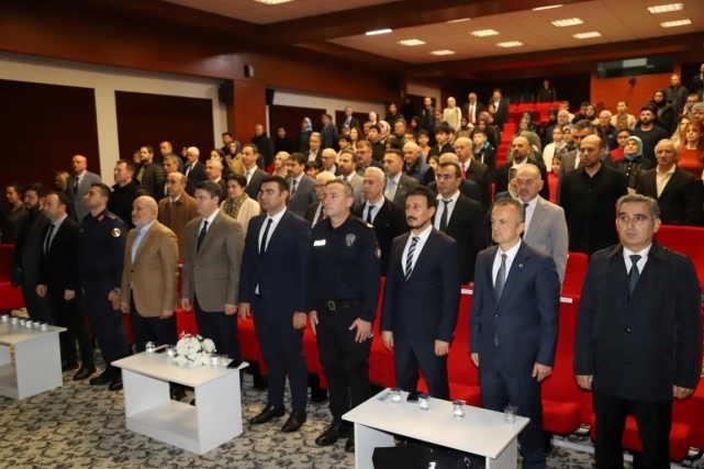 Hendek Kaymakamlık binası önündeki törenin ardından protokol üyeleri Hendek Ticaret Merkezi Konferans salonunda düzenlenen etkinlikte bir araya geldi.