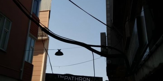 İnsanların hayatlarını tehlikeye atan elektirik kabloları,neden yer altına alınmıyor?Bu caddede bir vatandaşımız elektirik çarpmasından ölse,bu işin sorumlusu kim olur?