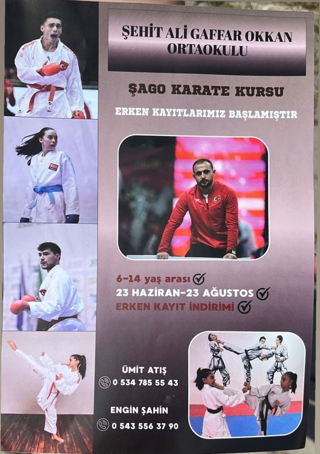 Hendek’te Şago Karate ve Jimnastik Kursu AçılıyorHendek'te çocuklar için heyecan verici bir gelişme yaşanıyor. Şago Spor Kulübü, karate ve jimnastik kurslarını başlatıyor. Yeni açılacak kurslar, çocukların fiziksel gelişimlerini desteklemeyi ve disiplinli spor alışkanlıkları kazandırmayı hedefliyor.Karate Kursu: 6-14 yaş grubu çocuklara yönelik olarak planlandı. Antrenmanlar, Şehit Gaffar Okkan Ortaokulu salonunda Antrenör Ümit Atış nezaretinde yapılacak. Bu eğitimler, çocukların özgüvenini artırmayı, konsantrasyon ve savunma becerilerini geliştirmeyi amaçlıyor.Jimnastik Kursu: 5-12 yaş arası çocuklara yönelik olarak sunulacak. Esneklik, denge ve koordinasyon gibi temel becerilerin gelişimini destekleyecek.Erken Kayıt Fırsatını Kaçırmayın!Kayıt ve detaylı bilgi almak isteyenler aşağıdaki numaralardan iletişime geçebilir:Ümit Atış: 0534 785 5543Engin Şahin: 0543 556 3790Şago Spor Kulübü ile çocuklar hem eğlenecek hem de sağlıklı bir yaşam için sporla tanışacak.