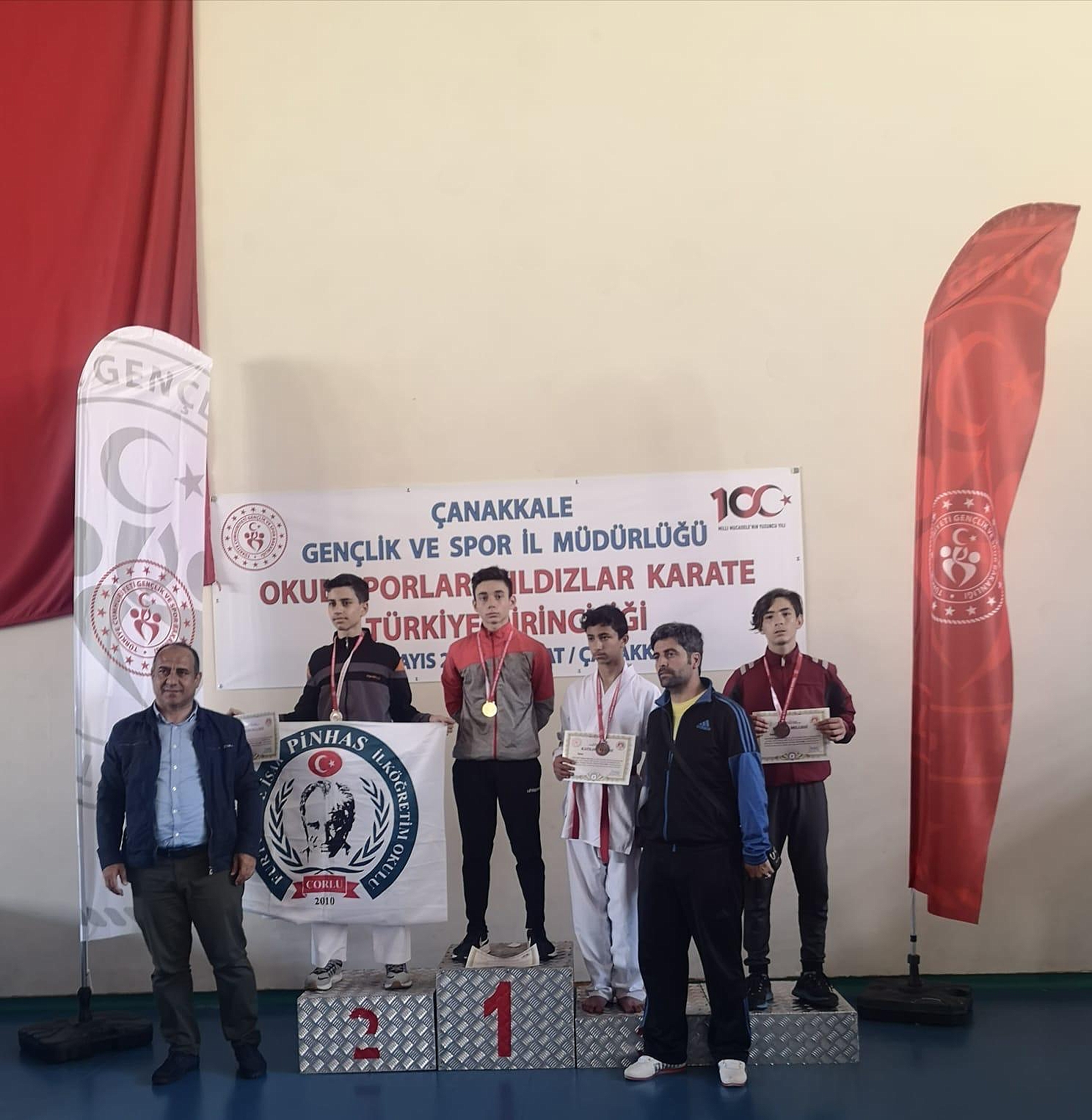 Karateciler madalyaya doymuyor!...Herşey Hendek Gençliği İçin...Çanakkale’de düzenlenen Ortaokullar Arası Türkiye Karate Şampiyonasında Hendek Belediyesi Karate Kulübü sporcuları İlker Eren Özel (Doğa Koleji) şampiyon, İnci Varoğlu (Şehit Ali Gaffar Okkan Ortaokulu) ve Anıl Kadir Benli (Tekzen Ortaokulu)Türkiye 3.’sü oldu. 48 ilden 254 sporcunun mücadele ettiği turnuvada Hendekli sporcular göz doldurdu.Şampiyon olmaya devamElde edilen başarıdan memnun olduklarını belirten Hendek Belediyesi Karate Antrenörü Nurkan Kayacık, “Çanakkale’de gerçekleştirilen orta Okullar arası Türkiye Karate Şampiyonası’nda derece yapan sporcularımı kutluyorum. Bizlere destek veren okul müdürlerimize, İlçe Milli Eğitim Müdürümüze, Halk Eğitim Müdürümüze, Belediye Başkanımız Turgut Babaoğlu’na, Kaymakamımız Orhan Burhan’a teşekkür ediyorum. Her Şey Hendek Gençliği İçin Durmak Yok Şampiyon Olmaya Devam İnşallah.”dedi.