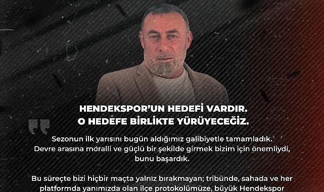 HEDEFE BİRLİKTE YÜRÜYECEĞİZHendekspor, deplasmanda Anadolu Hisarı İdmanyurdu’nu Ferhat ve Talha'nın golleriyle 2-1 mağlup ederek, zirve yarışını sürdürdü.Anadolu Hisarı İdmanyurdu galibiyetiyle puanını 25’e çıkaran Hendekspor, sezonun ilk yarısını 4. sırada tamamlayarak şampiyonluk yarışındaki iddiasını sürdürdü.Maç sonunda Hendekspor başkanı Sadettin Meraklı yazılı açıklama yaptı. Başkan Meraklı açıklamasında; Hendekspor'un hedefi vardır. o hedefe birlikte yüryeceğiz, dedi.BAŞKAN SADETTİN MERAKLI'NIN AÇIKLAMASISezonun ilk yarısını bugün aldığımız galibiyetle tamamladık. Devre arasına moralli ve güçlü bir şekilde girmek bizim için önemliydi, bunu başardık.Bu süreçte bizi hiçbir maçta yalnız bırakmayan; tribünde, sahada ve her platformda yanımızda olan ilçe protokolümüze, büyük Hendekspor taraftarımıza ve basın mensuplarımıza yürekten teşekkür ediyorum.Ayrıca bu noktaya gelmemizde emeği olan yönetim kurulu arkadaşlarıma, teknik ekibimize ve formanın hakkını sahada sonuna kadar veren futbolcularımıza ayrı ayrı teşekkür ediyorum. Her biri bu başarının önemli bir parçasıdır.Elbette yolun sonu değil, tam aksine yeni bir başlangıçtayız. Devre arasını en iyi şekilde değerlendirip, eksiklerimizi tamamlayarak ikinci yarıya daha güçlü, daha inançlı bir Hendekspor olarak çıkmak istiyoruz.Bu takım mücadele ediyor, bu camia inanıyor. Biz de yönetimiyle, teknik heyetiyle, futbolcusuyla ve taraftarıyla daha sıkı sarılarak bu işi başarmakta kararlıyız.Hendekspor’un hedefi vardır Ve o hedefe birlikte yürüyeceğiz.