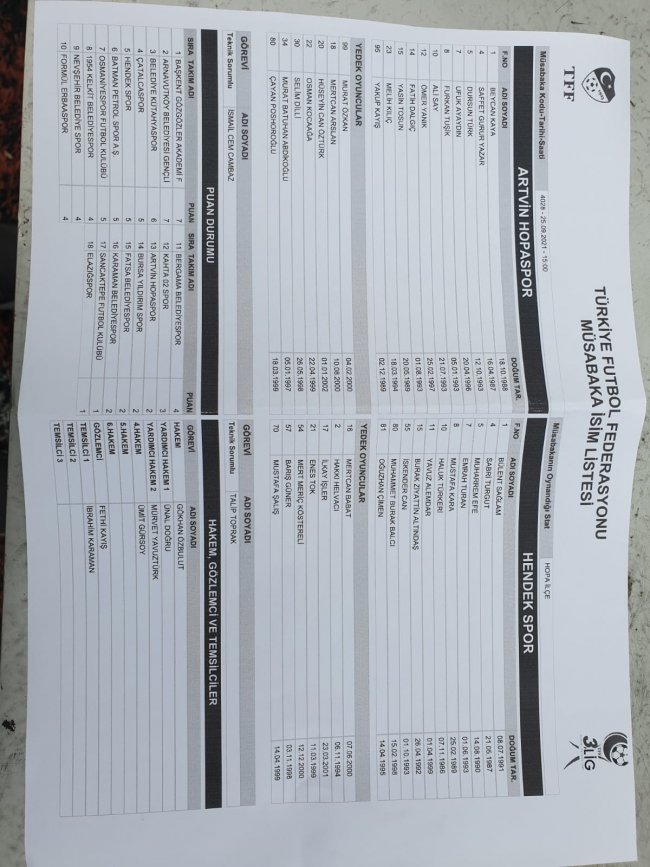 Artvin Hopaspor: Beycan, Saffet Gurur, Dursun(Hüseyin), Ufuk, Furkan, Ali(Batuhan), Ömer, Fatih, Yasin(Selim), Melih(Çayan), Yakup