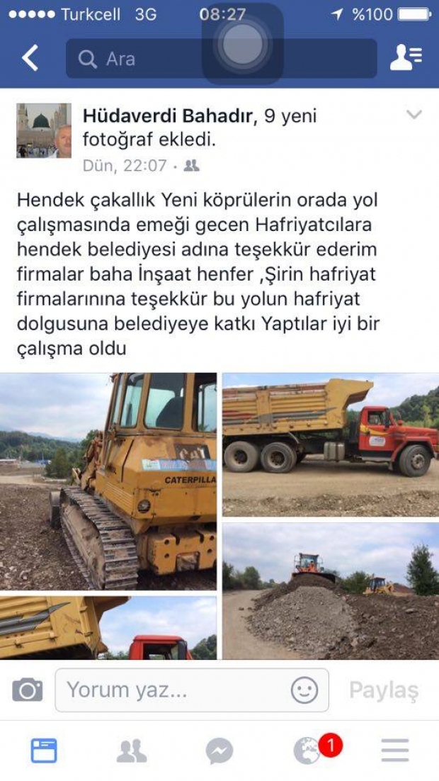 Sakarya Büyükşehir Belediyesi Hendek'te yaptığı köprüleri Bütçesine koydu.Bütçeye koyulmayan bir köprü asla yapılamaz.Büyükşehir Belediyesinin yapması gereken yeni köprü yollarını,nedense Hendek Belediyesi yapıyor. Hendek Belediyesi, yeni köprülerin yollarına yaptığı harcamaları,2016 yılı Bütçesinde göstermek zorunda.Yeni Köprülerin yolları yapılıyor yapılmasına,fakat bu harcamalar hem Büyükşehir Belediyesi Bütçesine,hemde Hendek Belediyesi Bütçesine eklenecek.Halkın anlayacağı dille konuşacak olursak,yapılan bir yola iki defa harcama yapılacak.Bu yola yapılan harcamaları;Hem Büyükşehir bütçesine yazacak,hemde Hendek Belediyesi yazacak...MHP HENDEK BELEDİYESİ MECLİS ÜYESİ HÜDAVERDİ BAHADIRDAN BELEDİYE ADINA TEŞEKKÜR(!)...MHP Hendek Belediyesi Meclis Üyesi Hüdaverdi Bahadır,Çakalık'ta yapılan yeni köprülerin yol çalışmasında çalışan hafriiyatçılara kendi face hesabından Hendek Belediyesi adına teşekkür etti.Bahadırın yaptığı teşekkürü; işin aslına bakarsak,Hendek Belediyesi Başkanı yapmalıydı.İşin teşekkür tarafının açıklaması kolay.Belki de Bahadır,bu teşekkürü Püsküllü Başkan yorulmasın diye yapmıştır.Belki de Bahadırın Belediyede anlaşmalı olarak gizli bir görevi vardır...Teşekkür işinin asıl önemli noktasına bakalım.Bu köprüyü ve yolları Büyükşehir yapıyor.Büyükşehir Belediyesi bu iş içinde Bütçesinde kaynağını ayırmış.Fakat,ne olduysa bir anda yolların yapım işini Hendek Belediyesi üstlendi.Hendek Belediyesinin yollarda yapılacak olan hafriyat işlerinin organizasyonunu da Hüdaverdi Bahadır üstlenmiş.Ve hafriyat işi bitme noktasına gelince,Bahadır Hendek Belediyesi adına Hafriyatçılara teşekkür ediyor.Bahadırın izlediği politika iktidar partisine yakın olma politikasıdır.Muhalefetin Meclis Üyesi,Büyükşehir Belediyesinin yapması gereken yolları,neden Hendek Belediyesinin yaptığını sorgulaması gerekirken,bırakın sorgulamayı,Hendek Belediyesine yol yapımında yardımcı oluyor.O yolların parası hem Sakarya hemde Hendek halkının cebinden çıkıyor.Hiç kimse ama hiç kimse bu milletin paralarıyla,bu millete keyif bağışlamasın...Bu işi biraz açarak açıklamak için bulunacak en güzel cümle;"Kaz gelecek yerden,tavuk esirgenmez"olur.Taş ocaklarının yolları hem ön taraftan hem de arka taraftan asfaltlandı.Bu asfaltlama işi yapılmadan önce hatırlarsanız,3.500.000 tl lik "Belediye Ek Bütçesi"nin Mecliste onaylanma işi vardı.Bahadır seçim üzeri olan bu "EK BÜTÇEYE" Ak Partili Meclis Üyeleriyle beraber Evet oyu verdi.Hüdaverdi Bahadır Ek Bütçe onaylandığı günlerde,Hendek Belediyesi Plan ve Bütçe Komisyonu üyesiydi.Bahadır,plan ve bütçe komisyonunda Belediyenin her türlü yaptığı harcamalara evet desteğiyle imza atmıştır.O günlerde Belediye Bütçesinde yapılan yanlış harcamalara gözlerini yummuştur.Bütçede gösterilen hayali olan "ANADOLU EFSANELERİ EĞLENCE YERİ"için harcanan 1.000.000 tl yi de görmemiştir...Hüdaverdi Bahadırın Hendek Belediyesi adına hafriyatçılara yaptığı teşekkür,Hendek'teki siyasetin geldiği durumun fotoğrafını gösteriyor.Arada ki ticari ve siyasi ilişkiler o kadar güçlenmiş ki,Belediye Başkanının yapacağı teşekkürü bile arada ki samimiyetten,muhalefet meclis üyesi yapabiliyor.Bu arada ki samimiyetin fazlalığı Hendek için iyi değil.Muhalefetin Belediyede yapılan yanlış işlerde, hesap sorması gerekir.Yeni Köprü yollarında Hendek Halkının cebinden çıkan paraların hesabını sorması gerekenler,teşekkür ediyorlar.İyikine Hüdaverdi Bahadır varmış,yoksa Hendek Belediyesi yeni köprülerin yol hafriyat işlerini bitiremezdi.Zaten Toçoğluda hafriyat işinde Hüdaverdi varken, o yollar çabuk biter diye bir sohbette konuşmuş.Ne diyelim araları çok iyi,bize de Allah muhabbetlerini bozmasın (!) demek düşer.