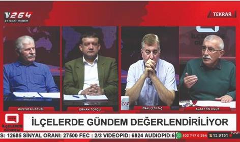 Sakarya'nın ilk ve tek uydu kanalı olan TV264' televizyonunda Alaattin Onur’un sunduğu Hendekli gazeteci Orhan Topçu, Pamukova’lı gazeteci İsmail Çetintaş ve Ferizli’li gazeteci Mustafa Üstübi katıldığı programda ilçelerin sorunları ve son bir haftada gelişen olaylar masaya yatırılacak.
