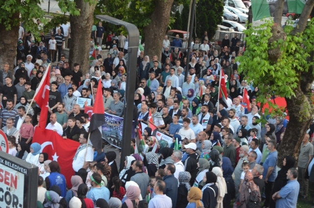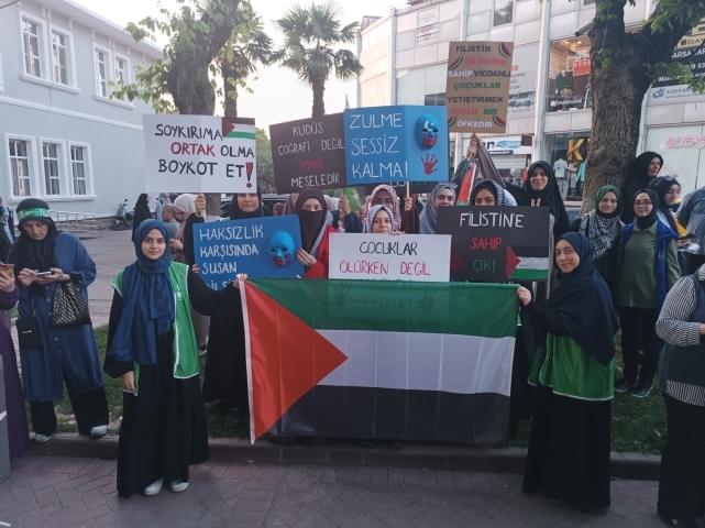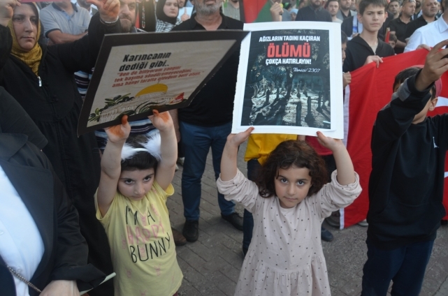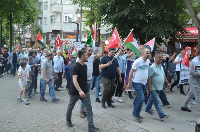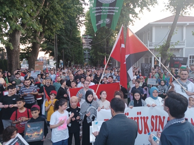 İSRAİL'E ÖFKE!Hendek halkı, katil İsrail'e karşı duyduğu öfkeyi, yürüyüş yaparak gösterdi. Atatürk Stadı önünde toplanan Hendek halkı, Hendek Cumhuriyet meydanına kadar yürüdü.Yoğun katılımın olduğu yürüyüşe, belediye başkanı İrfan Püsküllü, siyasi parti başkanları, belediye meclis üyeleri, STK temsilcileri, üniversite öğrencileri ve vatandaşlar katıldı.Yürüyüş boyunca, Filistin’e destek sloganları atan gruba duyarlı vatandaşlar ve duyarlı esnaflar da destek verirken, İsrail’in insanlık dışı olayları protesto edildi.Hendek Atatürk Stadı önünden, Cumhuriyet meydanına kadar süren İsrail'e lanet yürüyüşü, basın açıklaması sonrası edilen dualar ve tüm Şehitler için saygı duruşu ve İstiklal Marşı okunması ile sona erdi.
