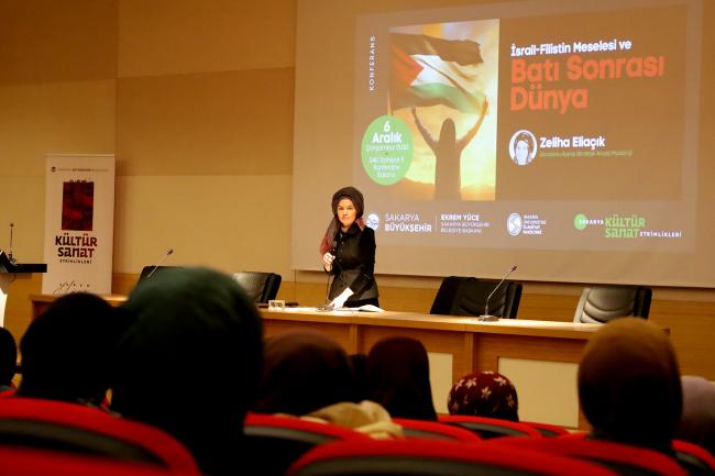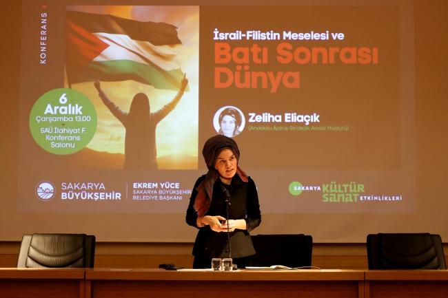 Büyükşehir Belediyesi programı kapsamında SAÜ’de “Batı Sonrası Dünya” konferansı veren Anadolu Ajansı (AA) Stratejik Analiz Müdürü Zeliha Eliaçık, İsrail-Filistin Meselesi’ne üzerine dikkat çekici analizler paylaştı.