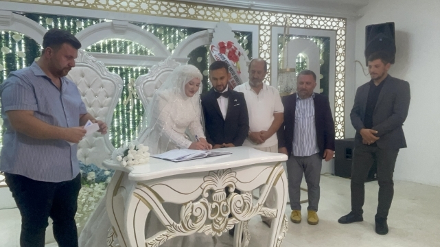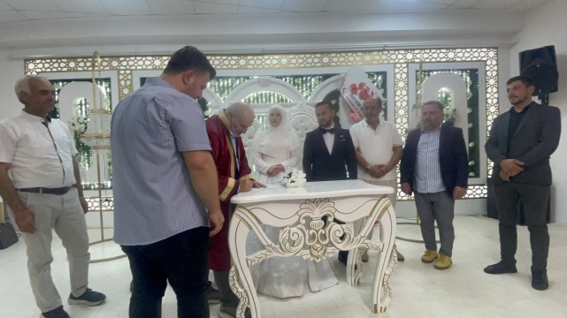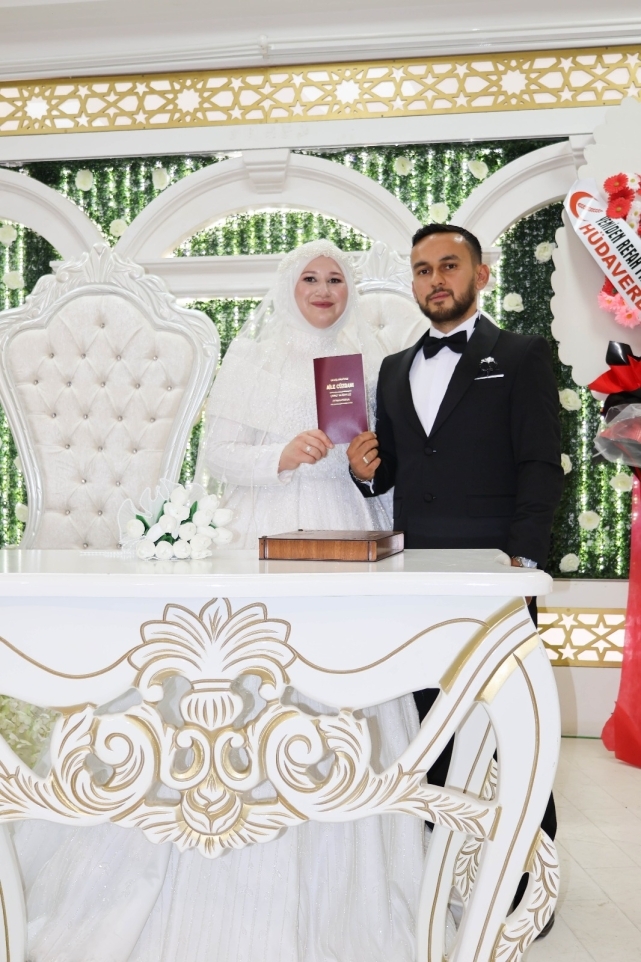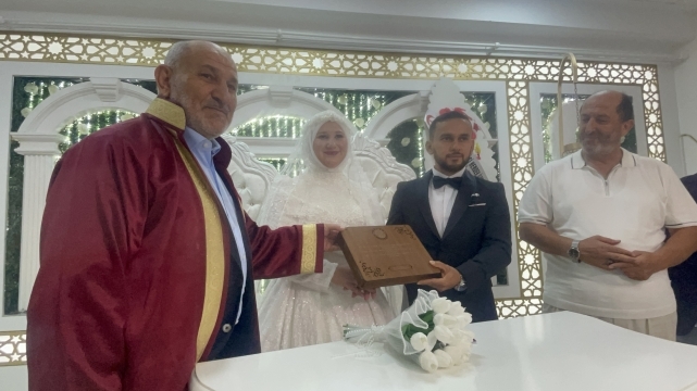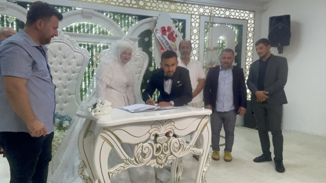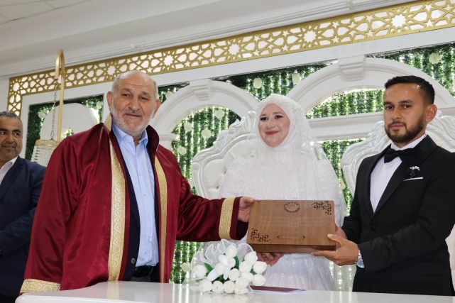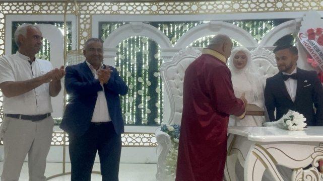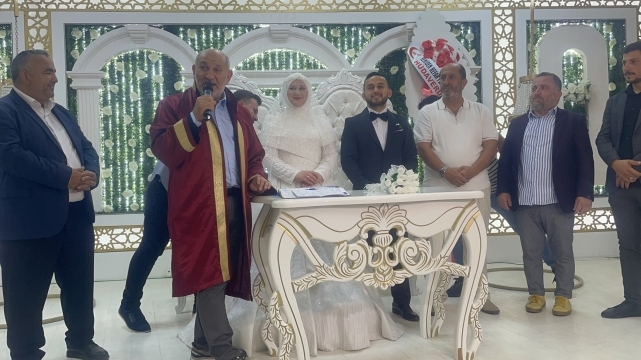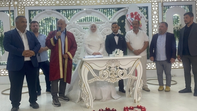 Yoğun katılımın olduğu düğün töreninde genç çiftin nikahını, Belediye Başkanı İrfan Püsküllü kıydı.