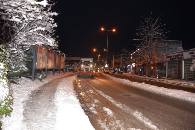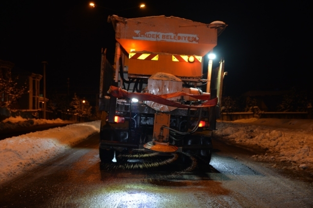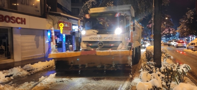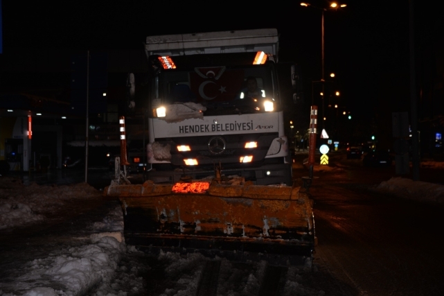 Hendek Belediyesi Kar Temizleme Ekipleri sabaha kadar çalıştı.