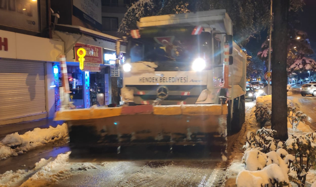 KAR MESAİSİ SABAHA KADAR SÜRDÜKar yağışının başlamasıyla birlikte teyakkuza geçen Hendek Belediyesi ekipleri şehrin tüm sokaklarının açılarak tuzlanması için seferber oldu. Ekipler sabahın ilk ışıklarına kadar çalışırken, 444 54 03 numaralı çağrı merkezine gelen tüm taleplere anlık müdahale yapıldı. Çalışmaların devam ettiği bildirildi.HİÇ ARA VERİLMEDİİlçe genelinde etkili olan kar yağışının ardından karla mücadele çalışmalarına hız kesmeden devam eden Hendek Belediyesi ekipleri, buzlanmayı önlemek araç ve yaya ulaşımının aksamaması, günlük yaşamın kesintiye uğramaması için gece boyunca başta ana arterler olmak üzere kar küreme ve tuzlama çalışmaları gerçekleştirdi. 7/24 esasına göre çalışmaya başlayan ekipler kar yağışının olumsuzluk etkilediği mahallelerde öncelikli olarak ana yolları açarak ulaşımın aksamamasını sağladı.ÇAĞRI MERKEZİAna arterlerin açılarak tuzlanmasının ardından ekipler ara sokaklarda kar küreme çalışmaları yapmaya başladı. Olası aksama ve problemler durumunda ise vatandaşlardan gelen talepleri de ciddiyetle değerlendirildi. Vatandaşların herhangi bir olumsuzlukta çağrı merkezi ile irtibata geçmesi istendi.DURMAK YOKHendek Belediye Başkanı Turgut Babaoğlu, “Kar yağışı devam ettiği sürece tüm ekip, ekipman ve araçlarımızla 7/24 sahada, hemşehrilerimizin hizmetinde olmaya devam edeceğiz. Vatandaşlarımızın mağduriyet yaşamaması adına gecemizi gündüzümüze katarak ara vermeden çalışıyoruz” dedi.