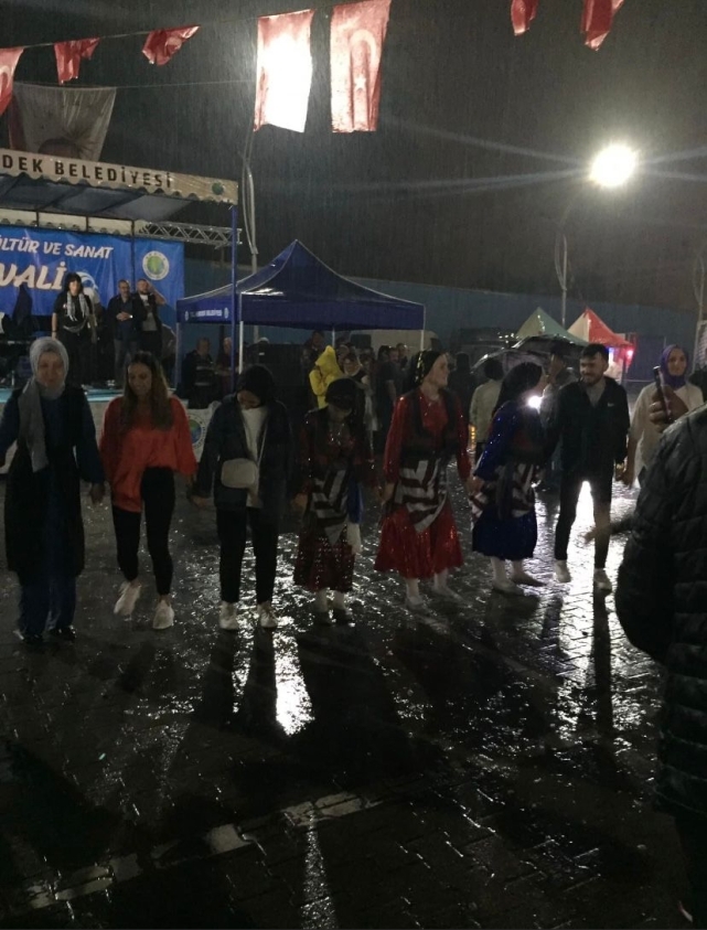 Sağanak yağışla iptal edileceği düşünülen festival, Karadeniz insanının inadıyla devam etti. Festivale katılan Karadenizliler sağanak yağışa rağmen horon tepmeye devam etti.