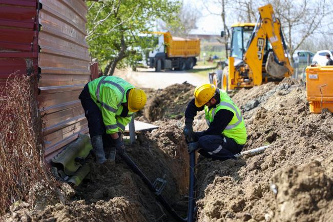 Kaynarca Osmanlı Mahallesi’nin ana iletim hattı SASKİ ile güvence altına alınıyorSASKİ, Kaynarca Osmanlı Mahallesi’nde bin 400 metrelik içme suyu şebeke hattını yenileme çalışmasına başladı. Yeni nesil, dayanıklı hattın inşa edileceği proje ile kayıp kaçağın önüne geçiliyor.Sakarya Büyükşehir Belediyesi Su ve Kanalizasyon İdaresi (SASKİ), şehrin her bir noktasını dirençli altyapı sistemleriyle donatma hedefine Kaynarca’da devam ediyor.Kaynarca Osmanlı Mahallesi’nde yürütülen çalışmalar kapsamında, mevcut şebeke ağları baştan aşağı yenileniyor.Bin 400 metrelik hat yenileniyorOsmanlı Mahallesi’nin bin 400 metrelik şebeke hattı ve abone bağlantıları yenilenime çalışmaları başladı. Ekiplerin yoğun bir mesaiyle sürdürdüğü çalışmalar sayesinde su kayıplarının önüne geçilirken, abonelerin musluklarına ulaşan suyun debisi de iyileştiriliyor.Kesintisiz hizmet için aralıksız çalışmaYürütülen çalışmalara ilişkin kurum tarafından yapılan açıklamada, “Sakarya’mızın her bir mahallesini geleceğin altyapısıyla buluşturmak için durmaksızın çalışıyoruz. Osmanlı Mahallemizde başladığımız bin 400 metrelik projeyle kayıp kaçak oranını minimum seviyelere indirerek kaynaklarımızı koruyoruz. Su kayıplarının önüne geçmek ve vatandaşlarımıza kesintisiz hizmet sunabilmek için çalışmalarımıza ara vermeden devam ediyoruz” ifadeleri kullanıldı.