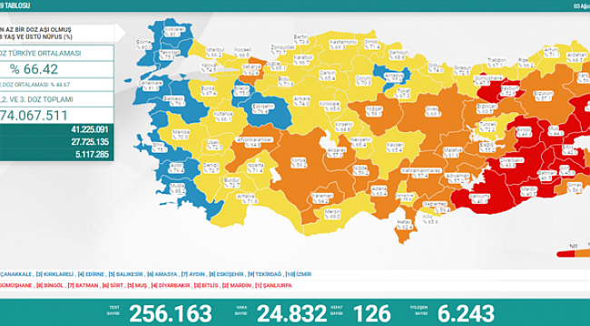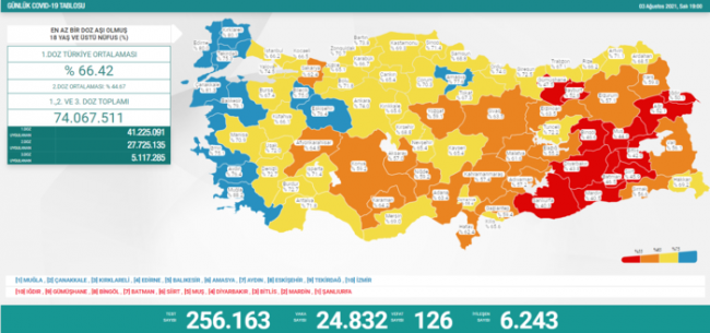 Bakan Koca 3 Ağustos Salı günü 24.932 vakaya rastlandığını açıkladı. Koca ayrıca 126 vatandaşımızın hayatını kaybettiğini duyurdu.