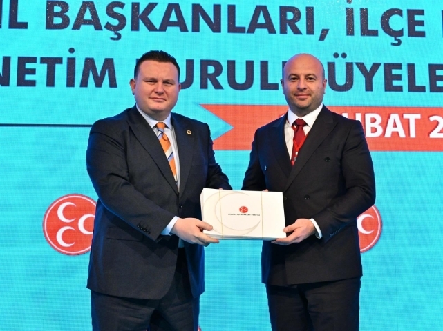 İl Başkanı Oğuz Alkaş sertifikasını MHP Sakarya Milletvekili ve MYK üyesi Muhammet Levent Bülbül’den aldı