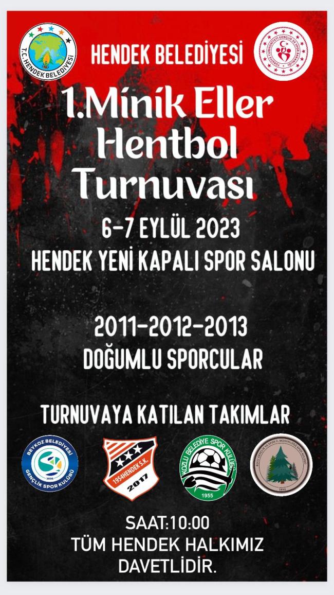 6/7 Eylül 2023 tarihinde Hendek kapalı spor salonunda düzenlenecek olan Hendek Belediyesi minik eller hentbol turnuvası bugün başlıyor.Kulüpler turnuvaya 120 sporcu ile katılım sağladı. Turnuvanın açılış müsabakası bugün saat 10:00'da 1954 Hendek Spor Kulübü ile Zonguldak Gençlik Hizmetleri Spor Kulübü arasında gerçekleşecek.Minik Eller Hentbol müsabakalarına Zonguldak ilinden 2 ekip, İstanbul Beykoz Belediye Spor Kulübü, Bolu Gençlik Hizmetleri Spor Kulübü ve 1954 Hendek Spor Kulübükatılım sağladı. Turnuvaya destekleri için Hendek Belediye Başkanı Turgut Babaoğlu ve ilçe spor müdürlüğümüze minik hentbolcular olarak teşekkür ediyoruz. Yarın tüm spor severleri çocuklarımıza destek olmaya bekliyoruz. Koray Oral1954 Spor Kulüp Başkanı