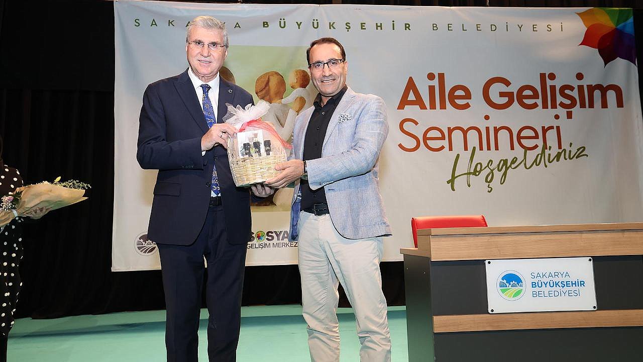 Dr. Ferhat Aslan ile ‘mutlu bir ailenin’ sırlarıBüyükşehir SGM’de sevenleriyle buluşan Dr. Ferhat Aslan, Sakaryalı anne-babalara ve çocuklara ‘mutlu ailenin sırlarını’ anlatarak çok önemli tavsiyelerde bulundu.Sakarya Büyükşehir Belediyesi Sosyal Gelişim Merkezi’nde “Aile Gelişim Seminerleri” devam ediyor. Bu kapsamda Dr. Ferhat Aslan’ın katılımlarıyla “Mutlu Ailenin Sırları” konulu seminer gerçekleştirildi.Yüce’den hediyeAilelerin yoğun katılım gösterdiği programa Başkan Ekrem Yüce de katıldı. Dr. Ferhat Aslan, örnek hikayelerle ilerlediği programda ailenin önemine dikkat çekti, anne, babalara ve çocuklara ise çok önemli tavsiyelerde bulunuldu. Başkan Ekrem Yüce, anlatımlarıyla ailelere ışık olan Dr. Aslan’a hediye takdim etti.“Her yola eşinizle devam ediyorsunuz”Dr. Ferhat Aslan, “Hayat bir yolculuk. Bu yolculukta giderken sizin yanınızda belli bir dönem anne ve babanız var. Belli bir dönem çocuklarınız var, bir de eşiniz var. Yaş durumuna göre gidelim, belli bir yolculuktan sonra Anne ve baba ile üzüntülü bir ayrılık başlıyor. Gözyaşlarını siliyorsun ve yoluna devam ediyorsun ama eşinle devam ediyorsun. Sonradan yolculuğa katılan çocuklarınız var. Onlarla da belli bir yıl sonra ayrılık yaşanıyor ama bu ayrılık gözyaşıyla değil de sevinçle oluyor. Siz yine eşinizle yolunuza devam ediyorsunuz.” diyerek evliliğin ve hayat arkadaşının önemine dikkat çekti.