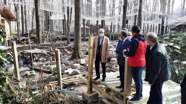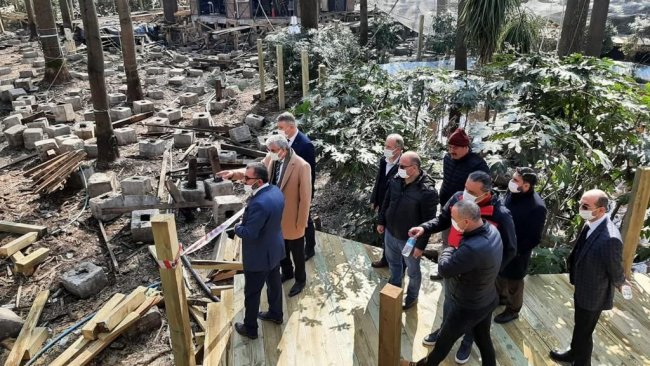 Ormanpark’ta çalışmalar hız kazandıRestorasyon çalışmaları devam eden Ormanpark’ta incelemelerde bulunan Başkan Ekrem Yüce, “Şehrimizin en uğrak noktalarından biri olan Ormanpark’ı yeniliyor, salgın sonrası günler için hazırlıyoruz. İnşallah Ormanpark’ın sağlıklı günlerde ailelerimizin hoşça vakitler geçireceği buluşma noktası olacağına inanıyoruz. Şehrimize ve hemşehrilerimize hayırlı olmasını diliyorum” dedi. Yüce ayrıca Akıllı Fidan Satış Noktasında da devam eden çalışmalara ilişkin bilgiler aldı.Sakarya Büyükşehir Belediye Başkanı Ekrem Yüce, Ormanpark’ta devam eden yenileme çalışmalarını yerinde inceledi. Ormanpark içerisinde inşa edilen Akıllı Fidan Satış Noktasında da gelinen son noktaya ilişkin BELPAŞ Genel Müdürü Osman Çelik’ten bilgiler alan Başkan Yüce, “Şehrimizin en uğrak noktalarından biri olan Ormanpark’ı yeniliyor, salgın sonrası günler için hazırlıyoruz. İnşallah Ormanpark’ın sağlıklı günlerde ailelerimizin hoşça vakitler geçireceği buluşma noktası olacağına inanıyoruz. Şehrimize ve hemşehrilerimize hayırlı olmasını diliyorum” dedi.Ormanpark’ın dokusu bozulmayacakBaşkan Ekrem Yüce, “Şehrin merkezinde orman ortamı sunan Orman Park’ta yenileme çalışmalarımız devam ediyor. Parkın dokusuna uygun, ahşap yapıları bozmadan sadece revize ederek parkın doğal görünümüne zarar vermeyeceğiz. Vatandaşlarımızın yeşil ağaçlar altında, ahşap iskelelerde, kuş cıvıltıları arasında ailecek zaman geçirebilecekleri alanları koruyacak ve artırmaya devam edeceğiz. Ayrıca şehrimizde üretilen süs bitkilerinin tanıtımına ve erişimine kolaylık sağlayacak olan, Fidan A.Ş. ve Peyzaj A.Ş.’nin kurumsal kimliğini yansıtacak satış ve sergi noktasının inşa çalışmalarında da sona geldik. Bu satış noktası da parkın dokusuna uygun bir şekilde tamamlanıyor. Şehrimize hayırlı olsun” dedi.