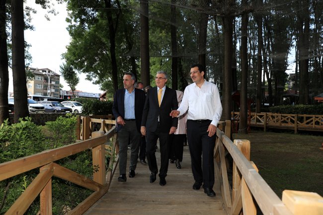 Ormanpark Yenilenen Haliyle Beğeni TopluyorAK Parti Genel Başkan Yardımcısı Ali İhsan Yavuz ve AK Parti Sakarya heyeti, Büyükşehir Belediyesi’nin yaptığı çalışmayla yepyeni bir yüze kavuşan Ormanpark’ı inceledi. Ziyarette güzel bir haber paylaşan Başkan Ekrem Yüce, “Ormanparka şimdi de macera parkuru, yeni oyun grupları, Değerler Eğitim ve Bilgi Evi ile kütüphane kazandıracağız” dedi. Genel Başkan Yardımcısı Yavuz, yapılan çalışmaların parka yeni bir soluk kattığını söyledi.Sakarya Büyükşehir Belediyesi’nin yürüttüğü çalışmayla Ormanpark, yepyeni bir yaşam alanı haline geldi. Bu alanda hizmete sunulan Bahçem Satış Noktası’nın da sosyal anlamda ciddi bir kalite kattığı Ormanpark’ta ki yenileme çalışmalarında sona gelindi. AK Parti Genel Başkan Yardımcısı Ali İhsan Yavuz, AK Parti Milletvekilleri Recep Uncuoğlu, Çiğdem Erdoğan Atabek, Büyükşehir Belediye Başkanı Ekrem Yüce ve AK Parti İl Başkanı Yunus Tever, sona gelinen parkta incelemelerde bulundu.“Yapılan çalışmayı çok beğendik, emeği geçenlere teşekkürler”Ormanpark ve Bahçem Satış Noktası’nı inceleyen AK Parti heyeti, alanda yapılan çalışmanın Sakarya’ya yakışır ve kaliteli olduğunu ifade ederek Başkan Yüce ve belediyeye teşekkür etti. AK Parti Genel Başkan Yardımcısı Ali İhsan Yavuz, yapılan düzenlemelerin parka yeni bir soluk kattığını belirterek, “Ormanpark, vatandaşlarımız için çok kıymetli olan, her Sakaryalının mutlaka hatırasının bulunduğu bir yer. Büyükşehir Belediyemiz, yaptığı son dokunuşlarla güzelliğe güzellik katmışlar. Yapılan çalışmaları çok beğendik, emeği geçenlere teşekkür ediyoruz. Yeni yüzüyle parkımız şehrin en kaliteli sosyal yaşam alanı olmuş. Aynı şekilde Bahçem ofisinde yapılan çalışmalar da birbirinden güzel. Şehrimize hayırlı olsun” dedi.Macera parkuru, oyun grupları ve bilgi evi geliyorYapılan çalışmalarla ilgili bilgi veren Başkan Ekrem Yüce, baştan aşağı yenilenen Ormanparka macera parkı, oyun grupları, Değerler Eğitim ve Bilgi Evi ile yeni bir kütüphane kazandıracaklarını açıkladı. Yüce, “Şehrimizin incisi, göz bebeği Ormanpark’ta bir süredir çalışıyoruz. Bu güzel alana daha neler katabiliriz diye düşündük, planlar yaptık. Yapı üzerine ahşap yeni işlemeler yerleştirdik, tüm mekanları baştan sona yeniledik, yepyeni bir yüze kavuşturduk. Hizmete koyduğumuz Bahçem Satış Ofisi ile birlikte burası çok güzel bir alana dönüştü. Güzel haberi de vermek istiyorum; Ormanpark içine Değerler Eğitim ve Bilgi Evi, macera parkuru, oyun grupları ve kütüphane kazandıracağız. Bunların da çalışmasını başlattık, burası artık yaşayan bir alan olacak. Hayırlı olsun” diye konuştu.