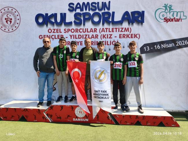 Özel Sporculardan Gurur Veren BaşarıAdapazarı Sait Faik Abasıyanık Ortaokulu öğrencileri, 15-16 Nisan 2026 tarihlerinde Samsun’da düzenlenen Okul Sporları Özel Sporcular Atletizm Türkiye Şampiyonası’nda elde ettikleri derecelerle büyük bir başarıya imza attı.Şampiyonada öğrencilerden Muhammed Ali Batıbay, gülle atma branşında Türkiye şampiyonu olurken uzun atlamada Türkiye üçüncülüğü elde etti. Kerem Yuşa Göktaş, gülle atmada Türkiye üçüncüsü olurken 100 metre yarışında Türkiye altıncısı oldu. Saffet Hanifi Birgül uzun atlamada Türkiye beşinciliği elde ederken, Emir Haktan Gökbakan ise aynı branşta Türkiye altıncısı olarak önemli bir başarıya imza attı.Başarılarıyla dikkat çeken öğrenciler, azimleri ve disiplinli çalışmalarıyla örnek olurken, eğitim camiası tarafından da takdirle karşılandı.Başarılarının ardından öğrenciler, Beden Eğitimi Öğretmeni Ruhi Kavaklı ve Okul Müdürü İbrahim Kün eşliğinde İl Millî Eğitim Müdürü Coşkun Bakırtaş’ı da ziyaret etti. Bakırtaş, elde edilen derecelerin gurur verici olduğunu belirterek şu ifadeleri kullandı:“Öğrencilerimizin azmi, disiplini ve mücadele ruhu bizleri son derece mutlu etti. Bu başarılar sadece bireysel değil, aynı zamanda ilimizin eğitim ve spor alanındaki gelişiminin de önemli bir göstergesidir. Sizlerle gurur duyuyor, emeği geçen öğretmenlerimize ve ailelerimize teşekkür ediyorum.”Bakırtaş, özel sporcuların her alanda desteklenmeye devam edeceğini vurgulayarak, öğrencilerin gelecekte daha büyük başarılara imza atacağına inandığını ifade etti.