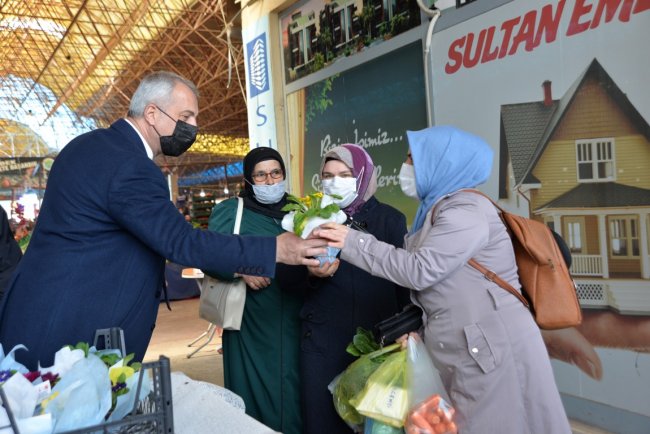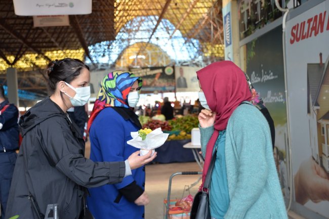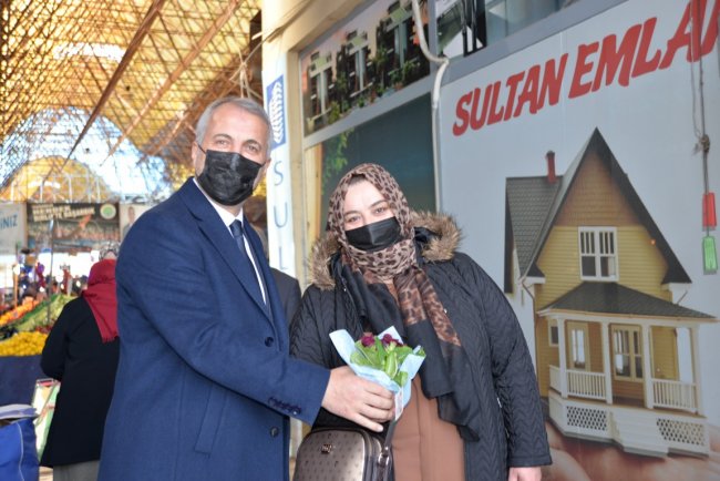 PAZAR YERİNDE ÇİÇEKLERLE KARŞILADILARHendek Belediye Başkanı Turgut Babaoğlu, KOVİD tedbirlerine uygun olarak Pazar yerinde kadınlara çiçekler dağıttı. Alışverişe gelen kadınlar çiçeklerle karşılanırken, Başkan Babaoğlu’na teşekkür ettiler.HES VE ATEŞ KONTROLÜHendek Belediye Başkanı Turgut Babaoğlu; 8 Mart Dünya Kadınlar Günü nedeniyle ilçe Pazar yeri girişlerinde kadınlara çiçek dağıttı. Dağıtıma Belediye Meclis Üyesi Nigar Görüm, MHP İlçe Kadın Kolları Başkanı Zübeyde Gürbüz ve ilçe kadın kolları üyeleri de katıldı. Pandemi tedbirleri kapsamında düzenlenen etkinlikte Emniyet, Jandarma, Zabıta ve belediye görevlileri vatandaşlarla, esnafa HES ve ateş ölçerle kontroller yaptı. Ayrıca tüm vatandaşlara ve esnaflara yönelik maske-mesafe ve hijyen uyarıları yapıldı.BABAOĞLU: KUTLUYORUMPazar yerine alışverişe gelen Hendekli kadınlar, çiçeklerle karşılanırken nazik davranış nedeniyle Başkan Turgut Babaoğlu’na teşekkür ettiler. Çiçeklerin üzerinde, “Yalnızca yılın belirli günlerinde değil, her gün değer görmeyi hak eden kadınlarımızın 8 Mart Dünya Kadınlar Günü'nü kutluyor, kadına yönelik şiddetin her türlüsünü lanetliyorum” yazısı yer alırken, Başkan Babaoğlu bir kez daha 8 Mart Dünya Kadınlar gününü kutladı.
