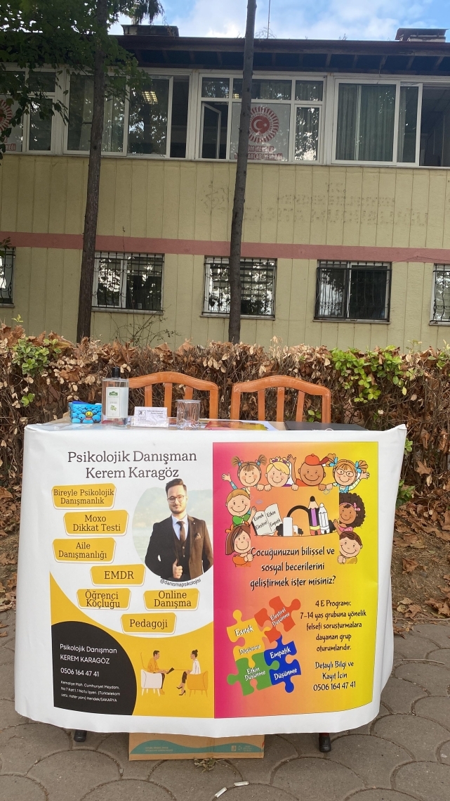 Psikolojik Danışmanlık Merkezi Hizmetleri Tanıtımı, Psikolojik Danışman Kerem Karagöz'ün sunumuyla, Muammer Sencer Caddesi Üniversite yolu üzerinde, PTT yanındaki stantda yapılıyor. Psikolojik Danışman Kerem Karagöz, tüm Hendek halkını standa davet ediyor.Stantta tanıtılacak konular: