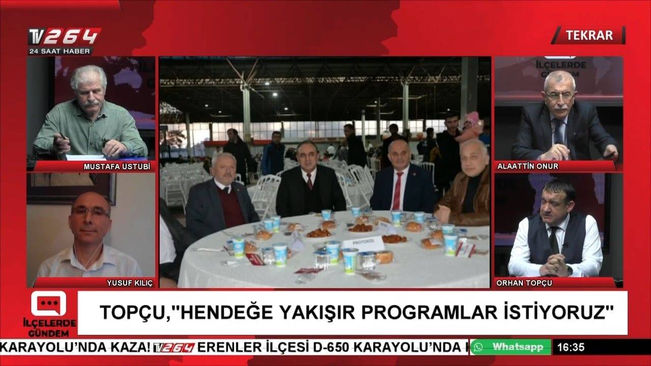 TV264 ekranlarında yayınlanan "İlçelerde Gündem" Programında Hendek Gerçek Haber Genel Yayın Müdürü Orhan Topçu, Hendek'te açılan Ramazan Çarşısı denilen alanı ve Hendek Belediyesi Kültür ve Sosyal İşler Müdürünü eleştirdi.