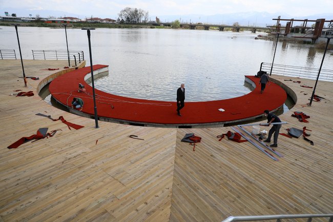 İskele bitmek üzere, kayıklar hazır“Sakarya Nehri kıyıları sosyal yaşamın yeni alternatifi olacak”Sakarya Nehri kıyısında hayata geçirilen projede iskelenin bitmek üzere olduğunu, kayıklarında hazırlandığını ifade eden Başkan Ekrem Yüce, “İskelede sona geldik. Alan içerisinde yer alacak gezi kayığı ve 4 fiber kayık ile misafirlerimizin sosyal yaşamına yeni alternatifler sunacağız. Bölgede inşa edeceğimiz zipline ise farklı bir deneyim olacak. Yaz aylarında vatandaşlarımızla buluşturmayı hedeflediğimiz projenin hayırlı olmasını diliyorum” dedi.Sakarya Büyükşehir Belediye Başkanı Ekrem Yüce, Sakarya Park’ta çalışmaları devam eden rekreasyon projesini yerinde inceledi. 350 metre uzunluğundaki zipline, gölet içerisinde dolaşacak kayıklar ve modern görünüme sahip iskelesiyle bölgenin sosyal yaşantısına büyük katkı sağlayacak projede çalışmaların tüm hızıyla devam ettiğini aktaran Başkan Yüce, önümüzdeki yaz aylarında vatandaşların hizmetine sunulacağının müjdesini verdi.Yeni bir sosyal alanİskelenin montaj çalışmalarına dair bilgiler paylaşan Başkan Yüce, “Yapımı tamamlanan iskelemizin montaj çalışmaları da önümüzdeki günlerde tamamlanacak. Devam eden çalışmalarımızı yaz aylarına kadar tamamlayarak bölgeyi en kısa zamanda vatandaşlarımızın hizmetine sunmayı hedefliyoruz. Alan içerisinde yer alacak gezi kayığı ve 4 fiber kayık ile ziyaretçiler doğanın güzellikleri içerisinde gönüllerince dolaşabilecekler. Aynı zamanda zipline projemiz ile de bölgenin sosyal yaşantısına farklı bir boyut kazandıracağız. Vatandaşlar Sakarya’nın doğal güzelliklerine ister iskele üstünde yürüyerek, ister gezi kayıkları ile gezerek şahit olabilecekler. Hayırlı olsun” dedi.