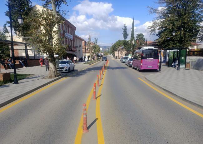 Büyükşehir Belediyesi, kentin dört bir yanında yol çizgilerini sil baştan yenileyerek sürücülere daha güvenli bir sürüş imkânı sunuyor.Sakarya Büyükşehir Belediyesi, şehrin ulaşım ağında yoğun bir mesai sürdürüyor. Grup yollarını, caddeleri, bulvarları ve kavşakları sil baştan yenileyen ekipleri, daha güçlü bir ulaşım ağı için gündüz- gece çalışıyor.Yol Bakım ve Altyapı Koordinasyon Dairesi Başkanlığı (YOL-BAK) Trafik Şube Müdürlüğü ekipleri son olarak Adapazarı şehir merkezi ve ilçelerde çizgilerin yenilenmesi için işlemlere ağırlık verdi.Yol çizgileri yenilendiÇalışmalar kent merkezindeki Eskişehir, Beyazıt, Konyalı Ali Bey, İstanbul, Ankara, Rauf Denktir, Okul Caddeleri’nde ve Geyve’nin Alifuatpaşa, Umurbey, Değirme Caddeler ile Enver Paşa, Eşme, Ağa, İnciksuyu Sokaklarında devam etti.YOL-BAK ekipleri sürücülerin güvenli ve kontrollü bir sürüş yapabilmesi için 55 kilometrelik cadde yoluna termoplastik yol çizgisi imalatı gerçekleştirdi.Şehrin dört bir yanındaBüyükşehir’den yapılan açıklamada, “Sakarya’mızın cadde ve sokaklarına yeni bir renk katmak ve sürücülerimiza güvenli sürüş imkanı sunmak için kent merkezinde ve şehrimizin tüm ilçelerinde sahadayız. Cadde ve sokaklarımızı yeni renkli çizgilerle buluşturuyoruz. Kısa bir sürede 55 kilometre mesafe kat ettik, çalışmalarımız devam edecek” denildi.