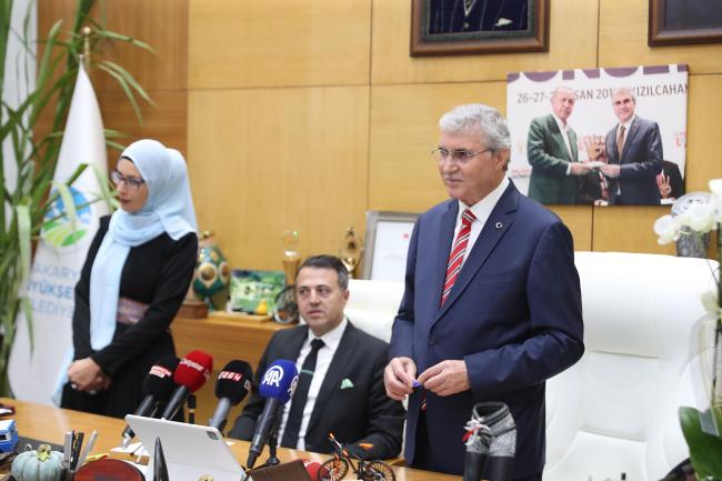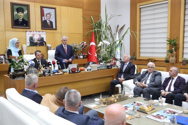 Sakarya, Bosna Hersek’in Visoko Belediyesi ‘kardeş şehir’ protokolünü imzaladı. Visoko’dan gelen kalabalık heyeti ağırlayan Başkan Ekrem Yüce, Bosna ile diller farklı olsa da kalplerin birlikte olduğunu söyledi. Yüce, “Dilimiz farklı olabilir, coğrafyamız aynı olmayabilir ama zihin dünyamız, hassasiyetimiz aynı. Aynı davanın yolcusu, aynı ağacın dalıyız. Kardeşliğimiz daim olsun” dedi. Visoko Belediye Başkanı Mirza Ganić ise, “Pozitif bir hikâyeyi bu imzayla başlattık ve sayfalarını birlikte yazacağız” dedi.Sakarya Büyükşehir Belediye Başkanı Ekrem Yüce, Bosna Hersek Visoko Belediye Başkanı Mirza Ganić ve beraberindeki heyeti makamında ağırladı. Daha öncesinde ‘İyi Niyet’ protokolü ile bir araya gelen Başkan Yüce ve Bosna heyeti, şimdi ise ‘Kardeş Şehir’ protokolüne kültürden ticarete, ekonomiden turizme kadar pek çok alanda birbirine katkı sağlamak adına karşılıklı olarak imzaları attı.“Mesafeleri yok sayıyoruz”Kardeşlikle atılacak her adımın yeni bir başlangıç olacağını ve Visoco ile diller farklı olsa da gönüllerin bir olduğunu ifade eden Yüce, “Her adımımızı kardeşlikle, birliktelik duygusuyla atıyoruz. Devletimize sahip çıkıyor, kardeş kentle mesafeleri yok sayıyoruz” vurgusu yaptı. Kardeş şehirlerle hayatın her alanında yeni projeler üreterek hayata geçireceklerini kaydeden Yüce, zulüm altında olan Filistin’i hatırlatarak ellerinden gelen her türlü yardımı ve desteği o bölgeye de vereceklerini ifade etti.“Diller farklı, kalpler bir…”Yüce, “Sakarya’da kimsenin kökenine, diline, dinine, rengine veya kültürüne, hiçbir farklılığına bakmadan; kalbimiz hemşerilerimize dönük şekilde hizmet etme gayreti içerisindeyiz. Bugün konuştuğumuz diller farklılık gösterebilir, yaşadığımız coğrafya farklılık gösterebilir ama bizim zihin dünyamız, hassasiyetimiz aynıdır. Bizler aynı davanın yolcusu, aynı ağacın dallarıyız. Büyükşehir olarak her adımımızı hem kardeşlik hem birliktelik duygusuyla atıyoruz” dedi.Kardeşliğimizi sağlamlaştırıyoruzKardeş şehirlerle vatana, memlekete faydalı işler yapacaklarını kaydeden Yüce, “Ülkemize, devletimize, bayrağımıza, dinimize, dilimize ve mazluma sahip çıkıyor, bununla da gurur duyuyoruz. Karşılıklı iş birliğinin kurulmasına destek olacak Kardeş Kent ile aramızdaki mesafeleri yok sayıyoruz. Kültürel ve tarihi mirasın korunmasına yönelik projeler geliştiriyoruz. Kardeş şehirlerle nice güzel, vatana, millete katkı sunacak işler yapmayı diliyor kardeşliğimizin daim olması temennimi sunuyorum” ifadelerini kullandı.Kardeş şehirler birbirini tanımalıVisoko Belediye Başkanı Mirza Ganić ise,“Sakarya bizim kardeş belediyemiz. Bu iade ziyareti pozitif hikayelerin bir başlangıcı ve sayfalarını beraber yazacağız. Her açıdan önümüzdeki sene ‘Türkiye Yüzyılı’ olsun. Visoko, büyük bir ticaret ağına sahip ve biz bunu değerlendirmek istiyoruz. Ağabey konumunda olan kardeşler küçüğünün her zaman daha iyi olmasını ister. Bende birbirimizi daha iyi şekilde tanımamızı istiyor beraber daha iyi projelere adım atmak istiyorum. Tarım, hayvancılık, turizm gibi alanlarda sizleri bekliyoruz. Tüm lojistik desteği de sağlayacağız. Ekrem başkan gibi bir başkana sahip olduğunuz için çok mutlu oldum” dedi.“Zulme karşı durmazsak utanç duyarız…”Ayrıca, Filistin’de devam eden zulmü hatırlatarak çağrı yapan Başkan Yüce, “Biliyorsunuz ki Filistin’e gitmek üzere sahra hastanelerimiz ve gemilerimiz yola çıktı. Elimizden gelen bu. Bu zulme karşı durmazsak utanç duyarız. Onların özgürlüğe kavuşacağına inanıyoruz ve dua ediyoruz” dedi. Başkan Yüce, imza töreni sonrasında misafirlere Sakarya hatırası olarak birçok hediye takdim etti ve günün anısına fotoğraflar çekildi.