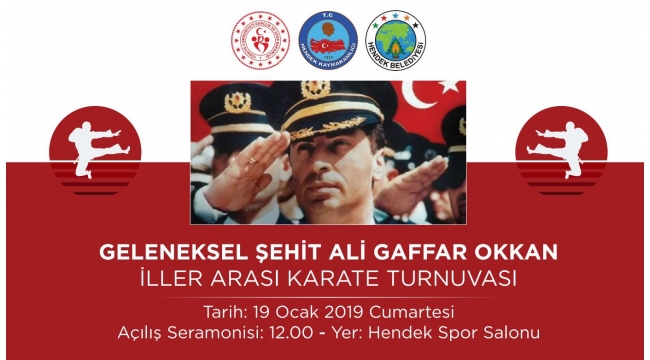 Hendek’te, Şehit Emniyet Müdürü Ali Gaffar Okkan anısına 19 Ocak’ta iller arası Karate turnuvası yapılacak. 13 ilden, 67 kulüp ve 1100 sporcunun katılacağı turnuvanın açılışı saat 12.00’de Hendek Spor Salonunda yapılacak.