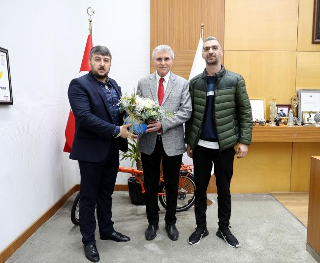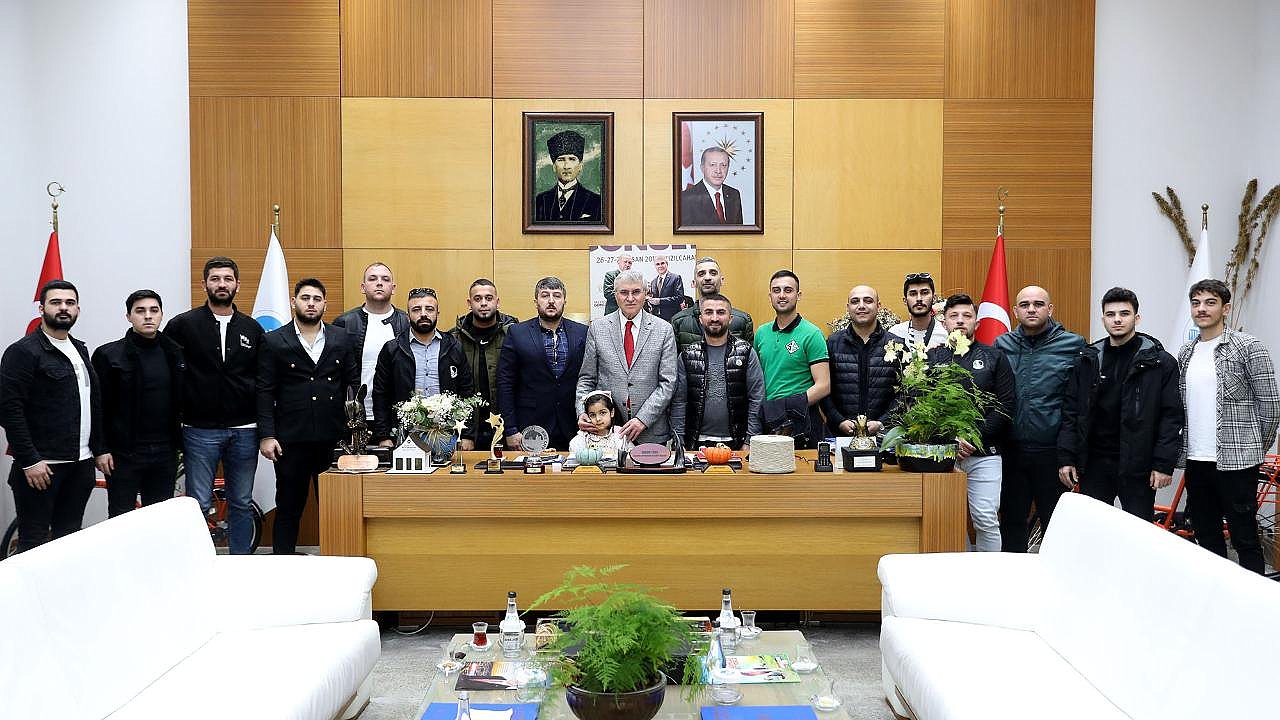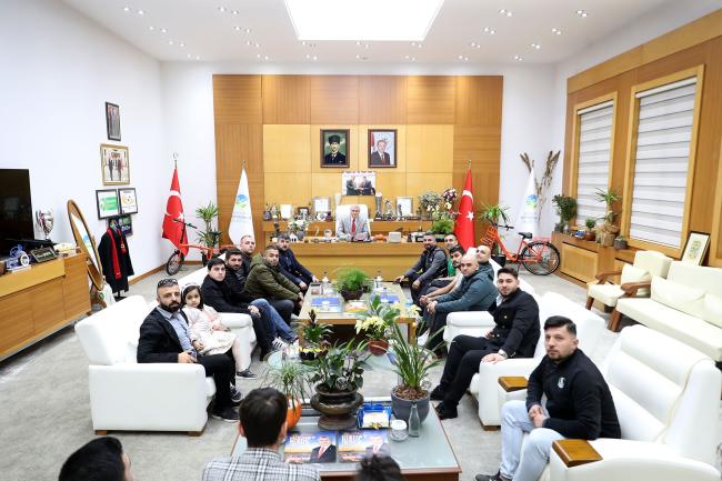 Ekrem Yüce: “Sakaryaspor’umuz omuz omuza daha güzel yarınlara…”Sakarya’nın ve Sakaryaspor’un sembolü olan Tatangalar, Büyükşehir Belediye Başkanı Ekrem Yüce’yi ziyaret ederek “tem destek” mesajı verdi. Taraftarlar, görev süresi boyunca Sakaryaspor için gösterilen yaklaşım sebebiyle Yüce’ye teşekkür etti. Yüce ise, “İnşallah atacağımız her adım Sakarya’mızı daha ileriye taşıyacaktır. Sakaryaspor ve Sakarya, bir bütün olarak adını altın harflerle her yere yazacak” dedi.Sakarya Büyükşehir Belediye Başkanı Ekrem Yüce, Sakaryaspor taraftar grubu olan Tatangalar’ı makamında ağırladı. Taraftarlar “tam destek” mesajı vererek Yüce’ye görev süreci boyunca Sakaryaspor’un daha iyi bir geleceğe sahip olması için gösterdiği hassasiyet sebebiyle teşekkürlerini sundu.“Tatangalar Sakaryaspor’un mihenk taşıdır”Makam ziyaretinde yeşil-siyahlı takımın dünü, bugünü ve geleceği masaya yatırıldı. Başkan Yüce, Sakaryaspor’un şehirle bütünleşmiş bir değeri olduğunu ifade ederek “birlik ve beraberlik” çağrısı yaptı. Kendisini bu süreçte yalnız bırakmayan tüm taraftarlara teşekkür eden Başkan Yüce, Tatangalar’ın Sakaryaspor’un mihenk taşı olduğuna vurgu yaptı.“Sakaryaspor vazgeçilmezdir”Başkan Ekrem Yüce, “Sakarya’mızın vazgeçilmezlerinden bir tanesi de Sakaryaspor’dur. Bizler sadece görevimiz başındayken değil her zaman kalbimizle Sakaryaspor’u destekliyoruz. Bu zorlu süreçte her zamanla bizimle birlikte olan taraftarımıza bir kez daha teşekkür ediyorum. Aklımızdan geçen tek şey her zaman şu oldu; sen, ben yok Sakaryaspor var. Şu an takımımız güzel bir ivme yakaladı. Yönetim, takım, taraftar ve şehir bir bütün halinde emin adımlarla bir üst lige çıkmak için savaşıyor. Hiçbir zaman takımımız yüzüstü bırakmayacağız ve tekrardan Süper Lige çıkmak için var gücümüzle savaşacağız” dedi.“Sakaryaspor ve Sakarya bir bütün”Sakarya ve Sakaryaspor’un bir bütün olduğuna dikkat çeken Yüce, “Tatangalar, Sakaryaspor’umuzun mihenk taşıdır. Bugün makamda beni ziyaret ederek Sakaryaspor’a olan desteklerimden ve Sakarya’ya yaptığım hizmetlerden ötürü teşekkür ettiler. Yolumuz daha çok uzun. Şehrimize ve milletimize kazandırmamız gerek birçok eser var. İnşallah atacağımız her adım Sakarya’mızı daha ileriye taşıyacaktır. Sakaryaspor ve Sakarya, bir bütün olarak adını altın harflerle her yere yazacak. Sakarya’nın ve Sakaryaspor’un yanında yer alan her bir vatandaşımıza teşekkürlerimi sunuyorum” ifadelerini kullandı.Başkan Yüce, ziyaret gelen taraftarların hediyelerini kabul ederek hediyeler takdim etti.