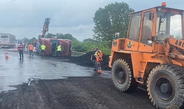 Hendek TEM otoyolunda tırın devrilmesi sonucu meydana gelen trafik kazasında 2 kişi yaralandı.Kaza, sabah 10.30 sıralarında TEM otoyolu Hendek Beyköy Mahallesi mevkiinde meydana geldi. Edinilen bilgilere göre, Ankara istikametine doğru giden Kürşat O (45) idaresindeki 80 GJ ... plakalı tır, kontrolden çıkarak devrildi. Kazada sürücü Kürşat O. ve yanında bulunan Baki Y. (20) hafif şekilde yaralandı.Olay sonrası bölgeye sağlık ve jandarma ekipleri geldi. Yaralıların tedavisi olay yerinde yapılırken, ekipler yolda güvenlik önlemi aldı.Kaza nedeniyle aksayan trafik yapılan çalışmaların ardından normale döndü.Kaza ile ilgili inceleme başlatıldı.
