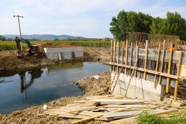 Büyükşehir Belediyesi, Söğütlü'de bulunan Tokmaklıdere Köprüsü'nün yenileme çalışmalarında sona yaklaşıyor. Toplamda 31 metre uzunluğa sahip olan köprünün tamamlanmasıyla ulaşım daha konforlu ve güvenli hale gelecek.Sakarya Büyükşehir Belediyesi tarafından Söğütlü ilçesi Tokmaklıdere Köprüsü’nde sürdürülen çalışmalar tüm hızıyla devam ediyor. Toplamda 31 metre uzunluğa ve 13 metre genişliğe sahip olan köprüde ekipler tarafından sürdürülen hummalı çalışma ile birlikte, köprünün önemli bir kısmı tamamlandı.Köprüde işlemler tamamlanıyorYenileme çalışmaları kapsamında, köprünün kenar ayak inşası büyük oranda tamamlanırken, prefabrik kirişlerinin imalatının ardından kirişlerin montaj işlemleri gerçekleştirilecek. Bölge halkı tarafından sıklıkla kullanılan ve lokasyon olarak önemli bir noktada bulunan Tokmaklıdere Köprüsü’nün tamamlanmasıyla birlikte ulaşım daha konforlu ve güvenli hale gelecek.Çalışmalar aralıksız devam ediyorBüyükşehir Belediyesi Fen İşleri Dairesi Başkanlığı tarafından yapılan açıklamada, köprü yenileme çalışmasının önemli bir kısmının tamamlandığı ifade edilerek, “Büyükşehir Belediyesi olarak, Söğütlü ilçesi Tokmaklıdere Köprüsü’nde sürdürülen çalışmalarımızı aralıksız bir şekilde sürdürmekteyiz. Toplamda 31 metre uzunluğa sahip olan köprüde, imalat çalışmalarının tamamlanmasıyla birlikte, köprünün yenileme çalışmaları sona erecek” ifadeleri kullanıldı.
