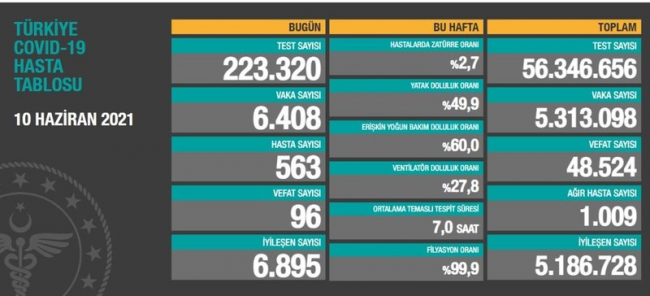 BAKAN KOCA VAKA SAYISINI AÇIKLADI...Türkiye'de son dakika corona virüsü gelişmelerini, vaka ve ölüm sayılarını her akşam paylaşan Sağlık Bakanı Dr. Fahrettin Koca, 10 Haziran 2021 günü vaka ve ölüm sayıları hakkında güncel bilgileri yaptığı son dakika açıklaması ile duyurdu.Bakan Koca 10 Haziran 2021 günü 6 bin 408 vakaya rastlandığını açıkladı.