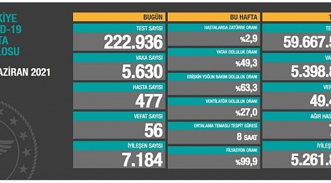 Türkiye'de son dakika corona virüsü gelişmelerini, vaka ve ölüm sayılarını her akşam paylaşan Sağlık Bakanı Dr. Fahrettin Koca, 25 Haziran Cuma günü vaka ve ölüm sayıları hakkında güncel bilgileri yaptığı son dakika açıklaması ile duyurdu.Bakan Koca 25 Haziran Cuma günü 5.630 vakaya rastlandığını açıkladı. Koca ayrıca 447 hastanın olduğunu ve 56 vatandaşımızın hayatını kaybettiğini açıkladı.