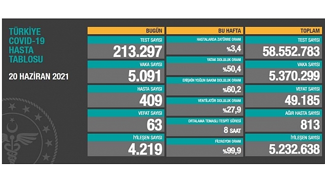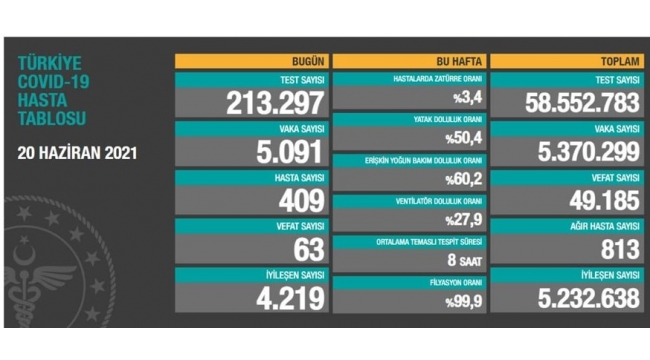 Türkiye'de son dakika corona virüsü gelişmelerini, vaka ve ölüm sayılarını her akşam paylaşan Sağlık Bakanı Dr. Fahrettin Koca, 20 Haziran Pazar günü vaka ve ölüm sayıları hakkında güncel bilgileri yaptığı son dakika açıklaması ile duyurdu.Bakan Fahrettin Koca, 20 Haziran Pazar günü 5091 vakaya rastlandığını açıkladı.