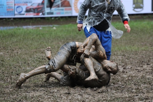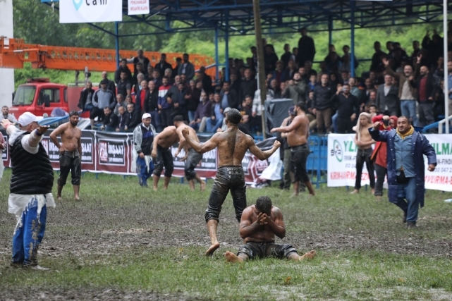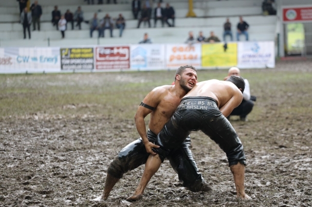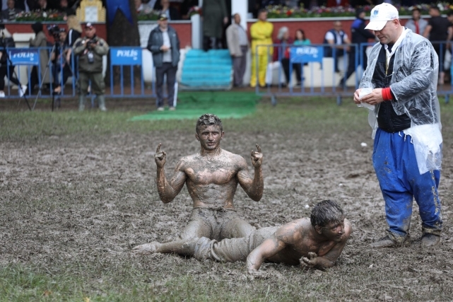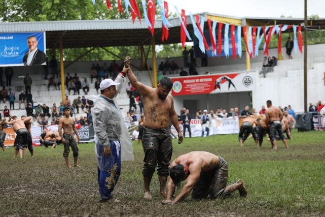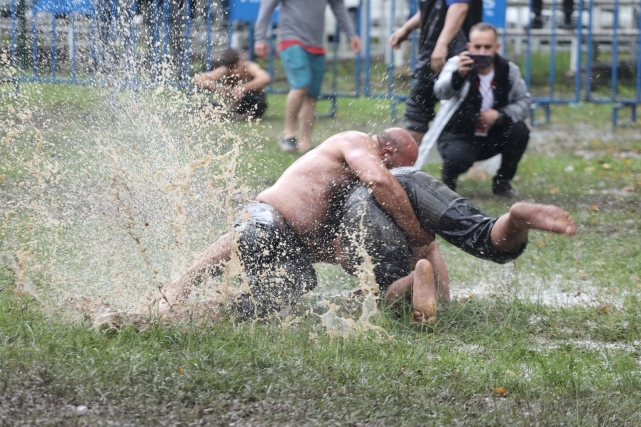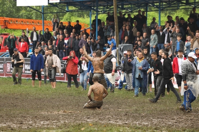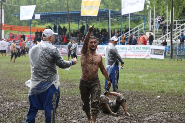 Yağmur altında yapılan 58. Akbalık Yağlı Güreşleri nefesleri kesti!