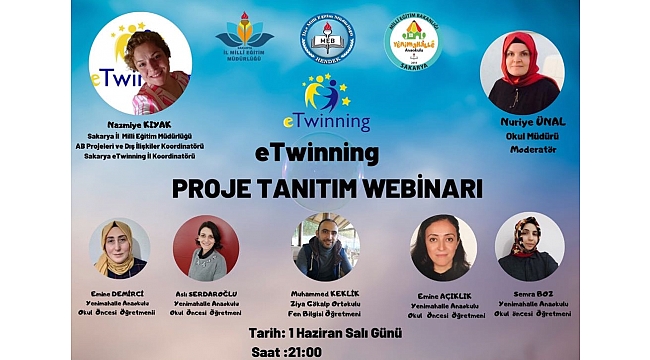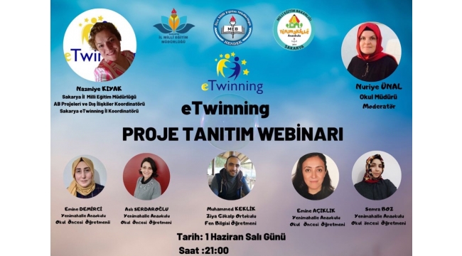 Hendek İlçe Milli Eğitim Müdürlüğü bünyesinde, Yenimahalle Anaokulu koordinasyonunda, Sakarya İl Milli Eğitim Müdürlüğü eTwinning Koordinatörü Nazmiye KIYAK’ın sunumuyla, “eTwinning Proje Tanıtım Webinarı” gerçekleştirildi.eTwinning İl Koordinatörü Nazmiye KIYAK hocanın, eTwinning projelerinin, öğretmenlere ve eğitime katkısını anlattığı bilgilendirme sunumundan sonra birçok örnek proje anlatıldı. İlçemiz Ziya Gökalp Ortaokulundan Muhammed Emin KEKLİK, Yenimahalle Anaokulundan ise Emine DEMİRCİ, Aslı SERDAROĞLU, Emine AÇIKLIK ve Semra BOZ isimli öğretmenlerin proje sunumları gerçekleştirildi.